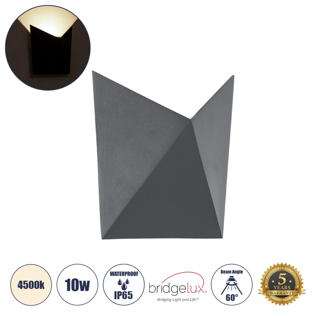 GloboStar® STEALTH 60522 Φωτιστικό Τοίχου – Απλίκα Αρχιτεκτονικού Φωτισμού Εσωτερικού/Εξωτερικού Χώρου Up or Down LED 10W 1100lm 60° AC220-240V Αδιάβροχο IP65 – Σώμα Αλουμινίου & Tempered Glass – Μ17 x Π17 x Υ7.5cm – Φυσικό Λευκό 4500K – Γκρι Ανθρακί – Bridgelux Chip – 5 Years Warranty