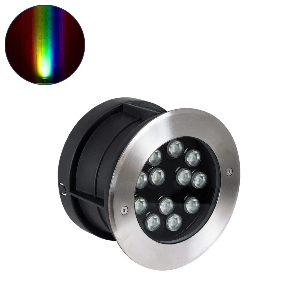 GloboStar® UNDERWATER-LUNTA 90403 Υποβρύχιο Χωνευτό Κινούμενο Φωτιστικό Σποτ Ειδικό για Σιντριβάνια LED 12W 1020lm 60° DC 24V Αδιάβροχο IP68 Φ12 x Υ13cm RGBW DMX512 – Ανοξείδωτο Ατσάλι – 3 Years Warranty