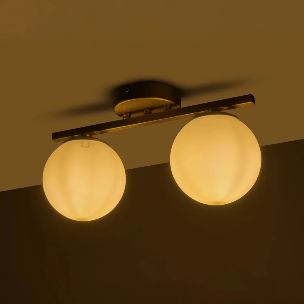 GloboStar® LUCENA 201-0035 Vintage Φωτιστικό Οροφής Ράγα Δίφωτο 2 x E27 IP20 Χρυσό Μεταλλό με Γαλακτερή Μπάλα – Μ50 x Π20 x Υ25cm