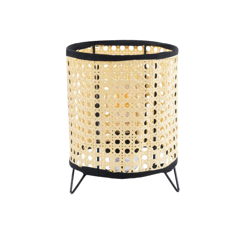 GloboStar® MONTE 01996 Μοντέρνο Επιτραπέζιο Φωτιστικό Πορτατίφ Μονόφωτο 1 x E27 AC220-240V IP20 – Φ16 x Υ22cm – Μαύρο Ύφασμα με Μπεζ Ξύλινο Μπαμπού Πλέγμα