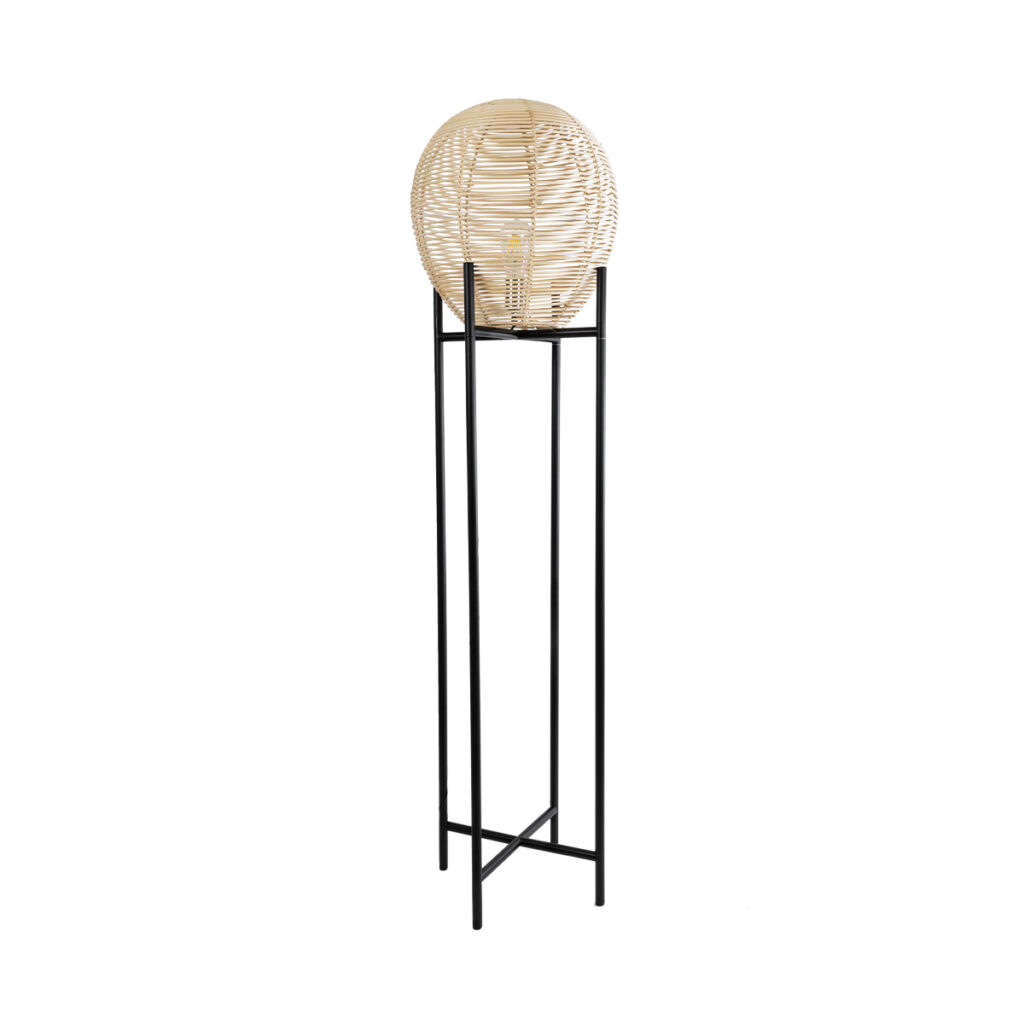 GloboStar® NERINA 02015 Boho Επιδαπέδιο Φωτιστικό Μονόφωτο 1 x E27 IP20 Μαύρο Μέταλλο με Μπεζ Ξύλο – Μ40 x Π40 x Υ115cm