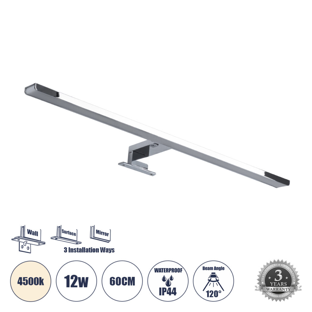 GloboStar® NINA 60422 Μοντέρνο Φωτιστικό Τοίχου – Απλίκα Καθρέπτη Μπάνιου – Πίνακα LED 12W 1400lm 120° AC 220-240V IP44 Μ60 x Π10.5 x Υ4cm – Φυσικό Λευκό 4500K – Χρώμιο Νίκελ- 3 Χρόνια Εγγύηση
