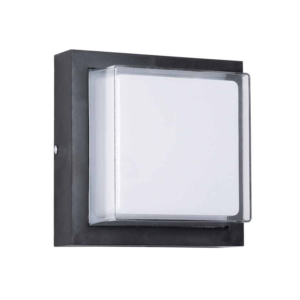 GLOBOSTAR® NEXUS 60768 Φωτιστικό Τοίχου – Απλίκα Εσωτερικού/Εξωτερικού Χώρου LED 10W 1050lm 120° AC175-265V Αδιάβροχο IP65 – Πλαστικό Σώμα – Φυσικό λευκό 4500K – Μ17 x Π17 x Υ9cm – Γκρι – Bridgelux Chip – 3 Χρόνια Εγγύηση