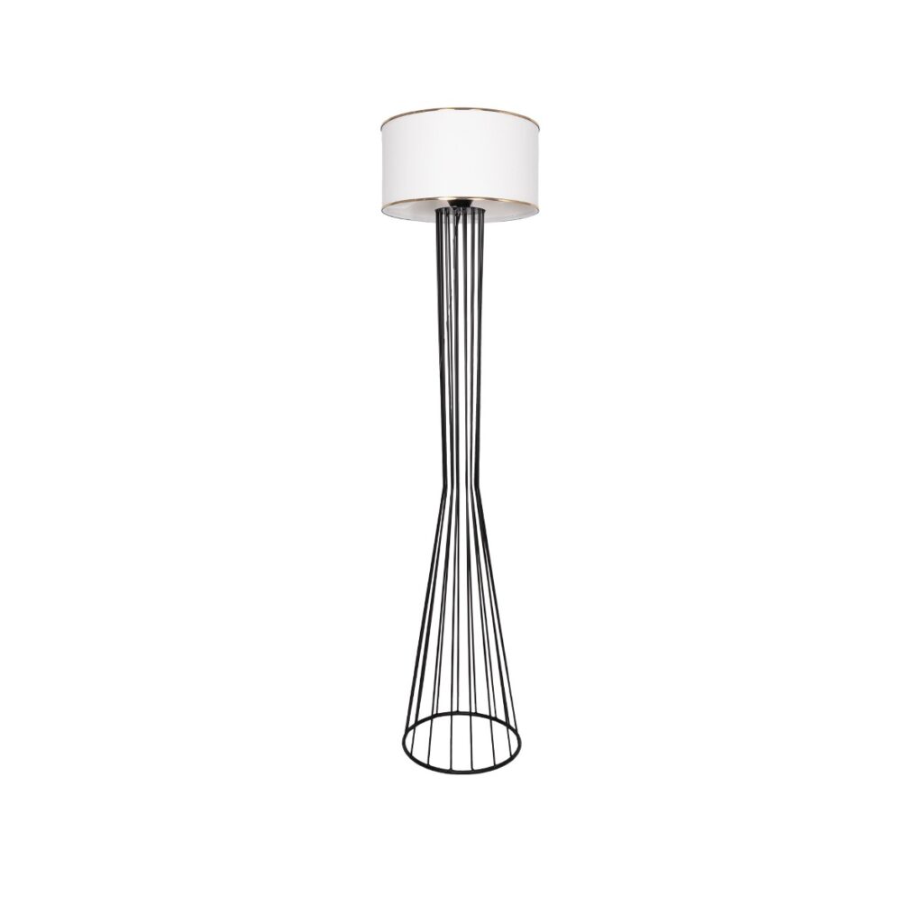 GloboStar® NOVA 201-0038 Μοντέρνο Επιδαπέδιο Φωτιστικό 1 x E27 IP20 Λευκό Μεταλλό με Μαύρο Ύφασμα – Μ38 x Π38 x Υ155cm