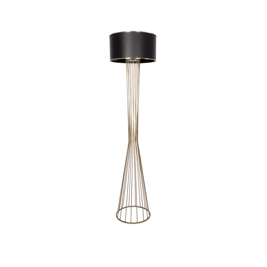 GloboStar® NOVA 201-0041 Μοντέρνο Επιδαπέδιο Φωτιστικό 1 x E27 IP20 Χρυσό Μεταλλό με Μαύρο Ύφασμα – Μ38 x Π38 x Υ155cm