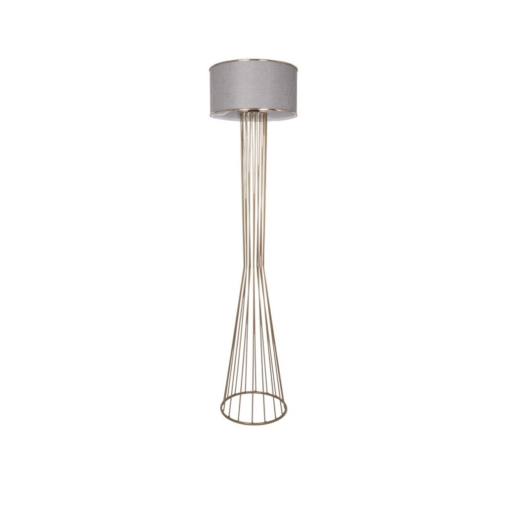GloboStar® NOVA 201-0040 Μοντέρνο Επιδαπέδιο Φωτιστικό 1 x E27 IP20 Χρυσό Μεταλλό με Μπεζ Ύφασμα – Μ38 x Π38 x Υ155cm