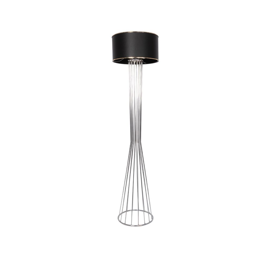 GloboStar® NOVA 201-0039 Μοντέρνο Επιδαπέδιο Φωτιστικό 1 x E27 IP20 Ασημί Μεταλλό με Μαύρο Ύφασμα – Μ38 x Π38 x Υ155cm