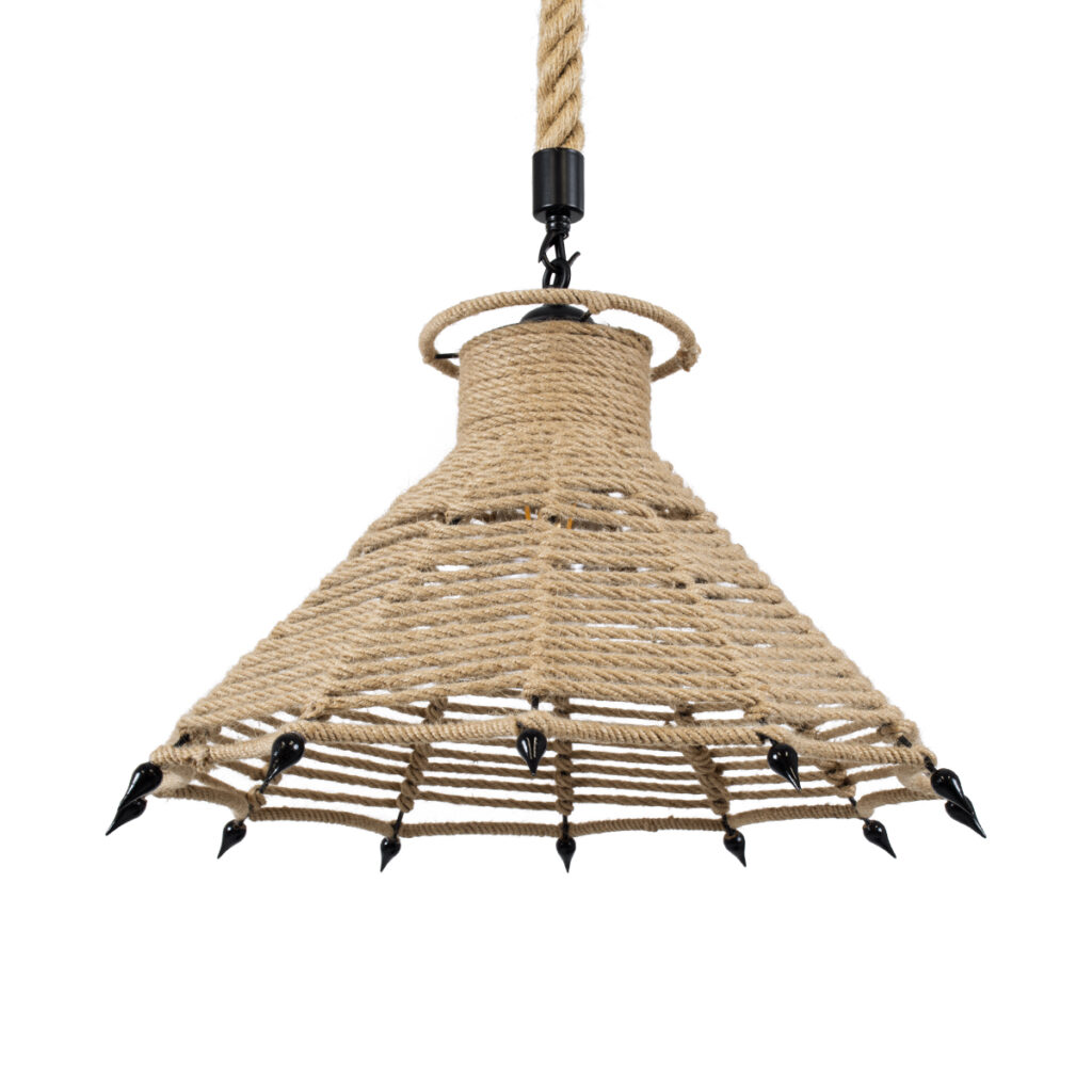 GloboStar® ORVAL 01689 Μοντέρνο Κρεμαστό Φωτιστικό Πλέγμα Μονόφωτο 1 x E27 IP20 Μαύρο Μέταλλο με Μπεζ Σχοινί – Μ20 x Π20 x Υ20cm