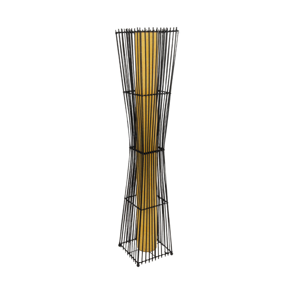 GloboStar® PALMA 02274 Boho Επιδαπέδιο Φωτιστικό Δίφωτο 2 x E27 IP20 Μαύρο Ξύλο με Μπεζ Ύφασμα – Μ25 x Π25 x Υ140cm