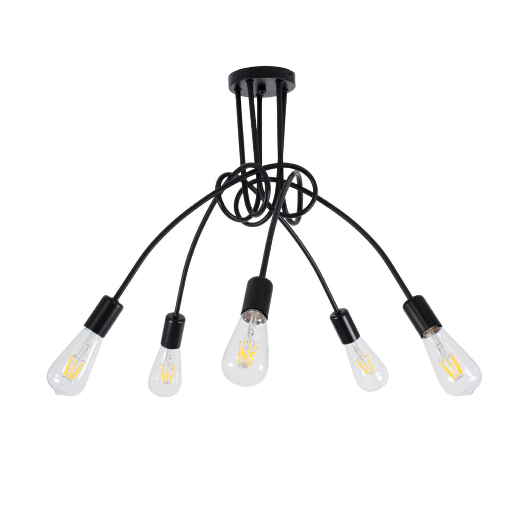 GloboStar® PAULELI 01127 Μοντέρνο Φωτιστικό Οροφής Πλέγμα Πολύφωτο 5 x E27 IP20 Μαύρο Μέταλλο – Μ76 x Π76 x Υ45cm
