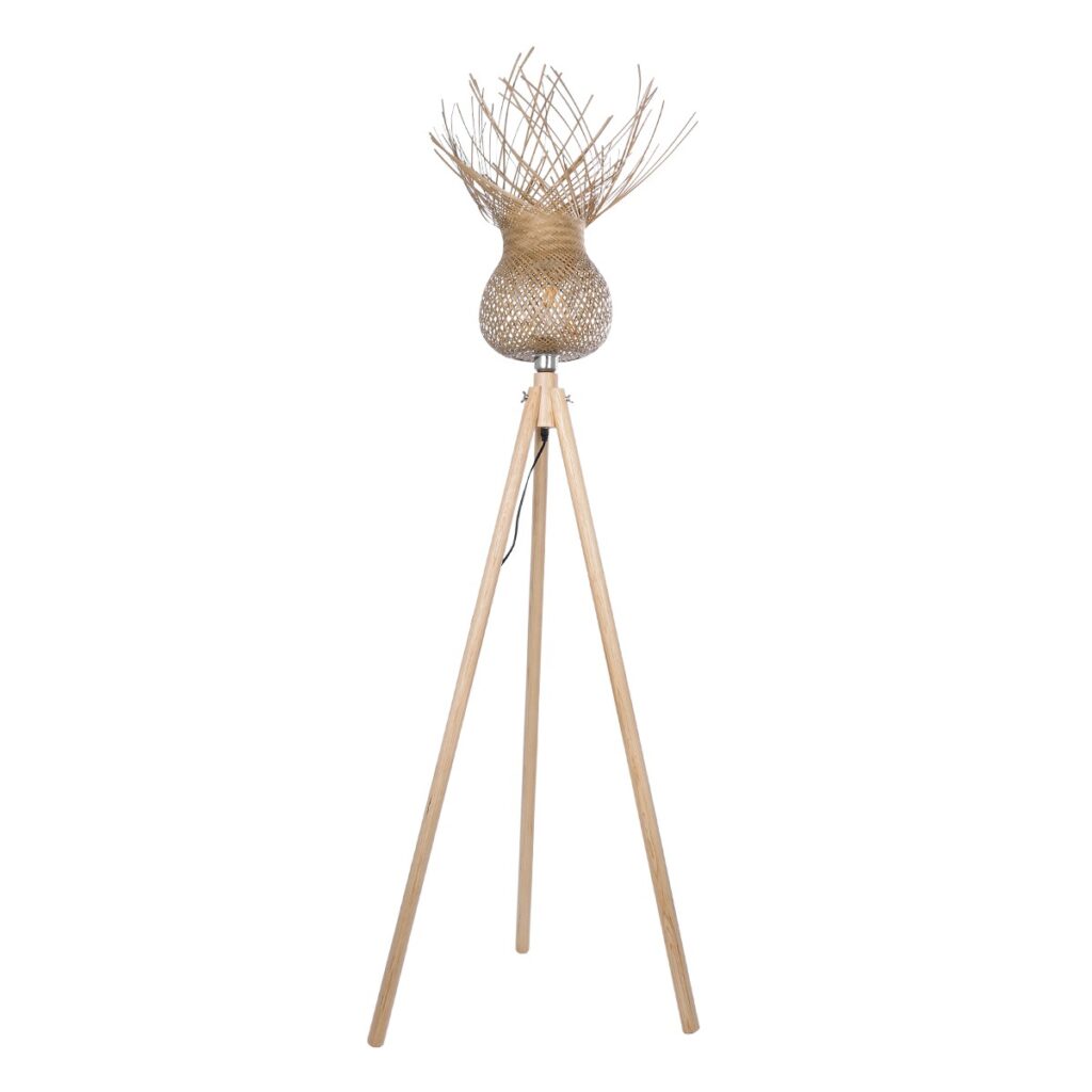 GloboStar® POPPY 01988 Boho Επιδαπέδιο Φωτιστικό Μονόφωτο 1 x E27 IP20 Μπεζ Ξύλο – Μ58 x Π58 x Υ145.5cm