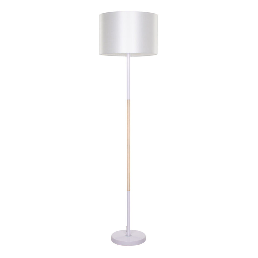 GloboStar® ASHLEY 00826 Μοντέρνο Επιδαπέδιο Φωτιστικό Μονόφωτο 1 x E27 IP20 Λευκό Μέταλλο, Λευκό Ύφασμα & Μπεζ Ξύλο – Μ40 x Π40 x Υ145cm