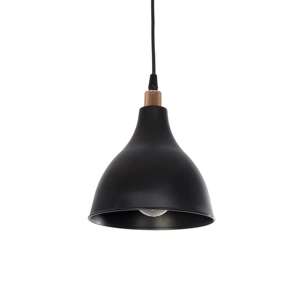 GloboStar® RADE 203-0124 Μοντέρνο Κρεμαστό Φωτιστικό Καμπάνα Μονόφωτο 1 x E27 IP20 Μαύρο με Χρυσό Πλαστικό – Μ17.5 x Π17.5 x Υ56cm