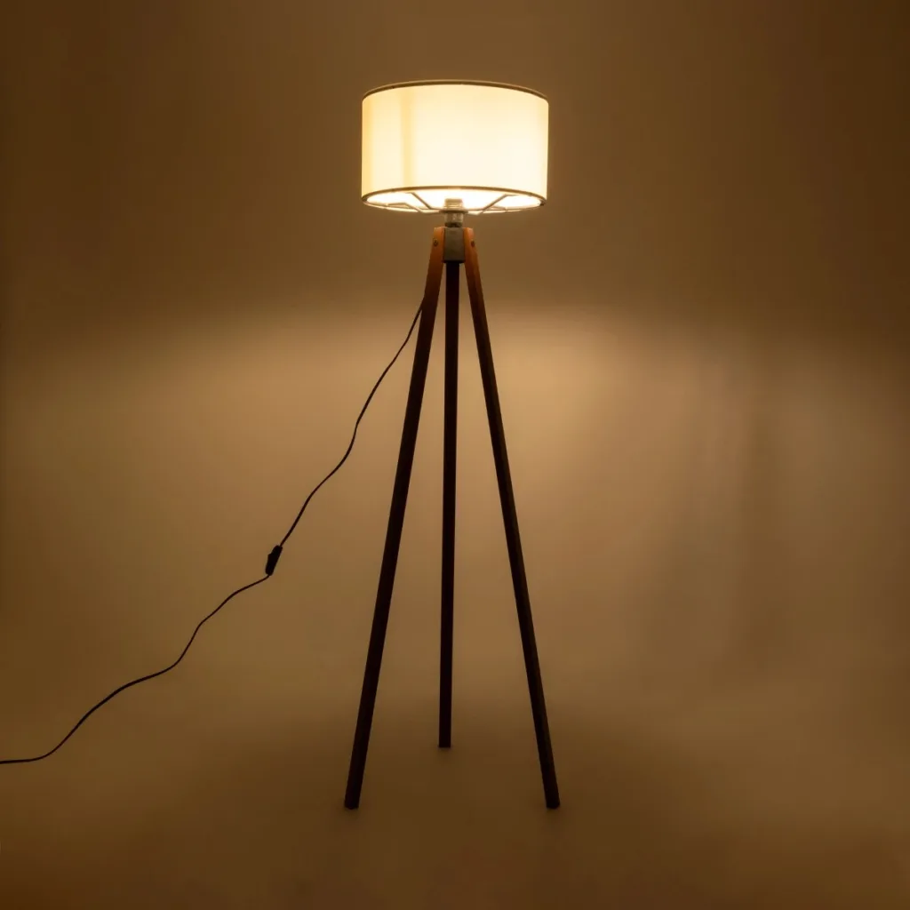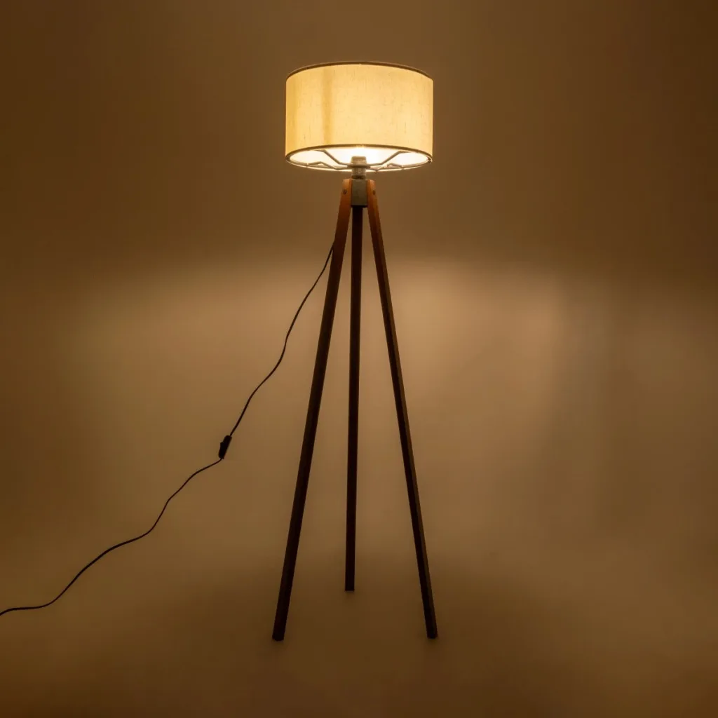 GloboStar® SAGA 204-0040 Μοντέρνο Eπιδαπέδιο Φωτιστικό Μονόφωτο 1 x E27 IP20 Καρυδί Ξύλο με Μπεζ Ύφασμα – Μ38 x Π38 x Υ140cm