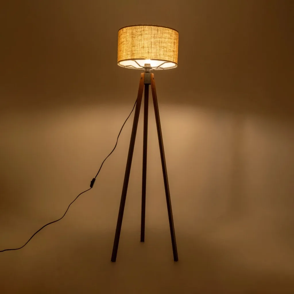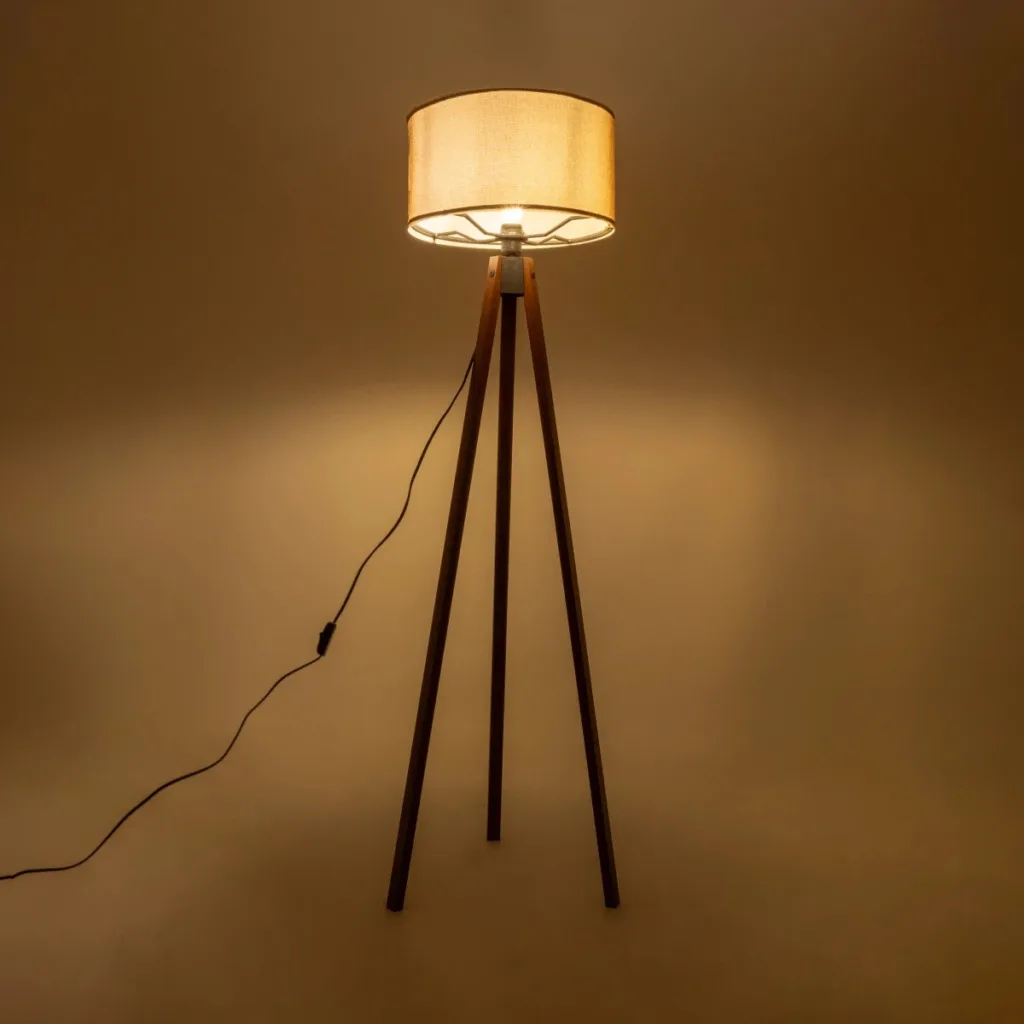 GloboStar® SAGA 204-0037 Μοντέρνο Eπιδαπέδιο Φωτιστικό Μονόφωτο 1 x E27 IP20 Καρυδί Ξύλο με Mπεζ Ύφασμα – Μ38 x Π38 x Υ140cm