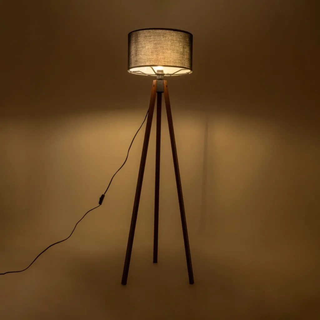 GloboStar® SAGA 204-0036 Μοντέρνο Eπιδαπέδιο Φωτιστικό Μονόφωτο 1 x E27 IP20 Καρυδί Ξύλο με Γκρι Ύφασμα – Μ38 x Π38 x Υ140cm