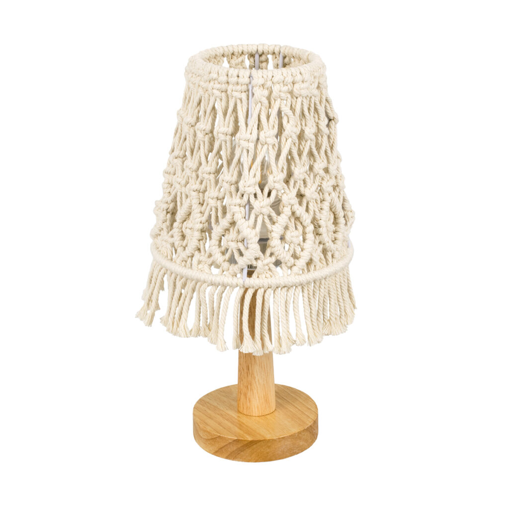 GloboStar® RWANDA 36210 Vintage Επιτραπέζιο Φωτιστικό Πορτατίφ Μονόφωτο Boho – Μακραμέ Πλεκτό Χειροποίητο Μπεζ Υφασμάτινο με Σχοινί Φ15 x Υ30cm