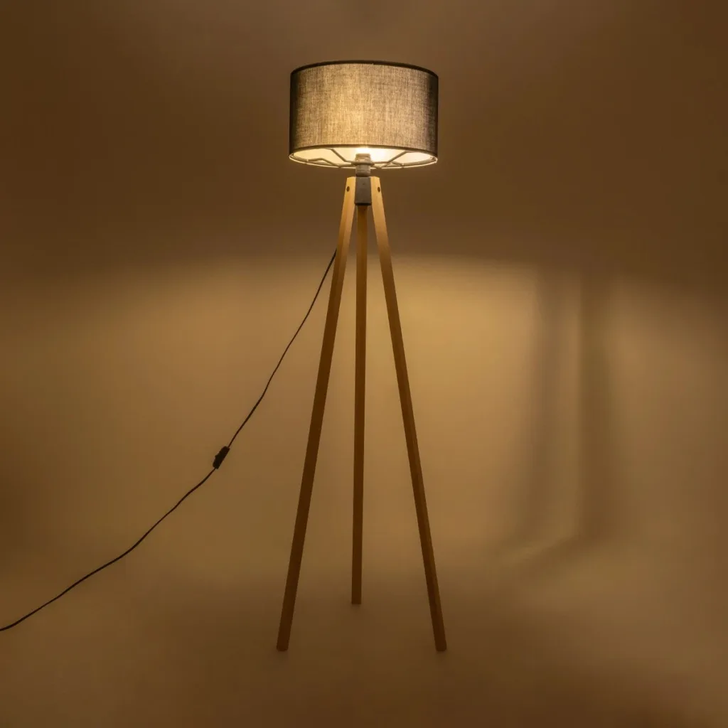 GloboStar® SAGA 204-0041 Μοντέρνο Eπιδαπέδιο Φωτιστικό Μονόφωτο 1 x E27 IP20 Μπεζ Ξύλο με Μαύρο Ύφασμα – Μ38 x Π38 x Υ140cm