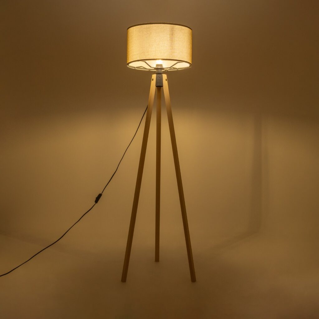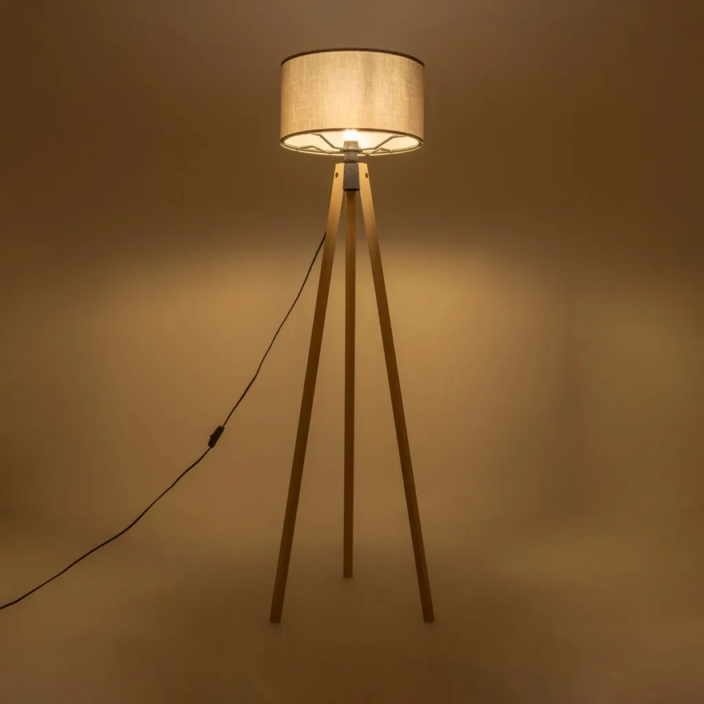 GloboStar® SAGA 204-0043 Μοντέρνο Eπιδαπέδιο Φωτιστικό Μονόφωτο 1 x E27 IP20 Μπεζ Ξύλο με Μπεζ Ύφασμα – Μ38 x Π38 x Υ140cm