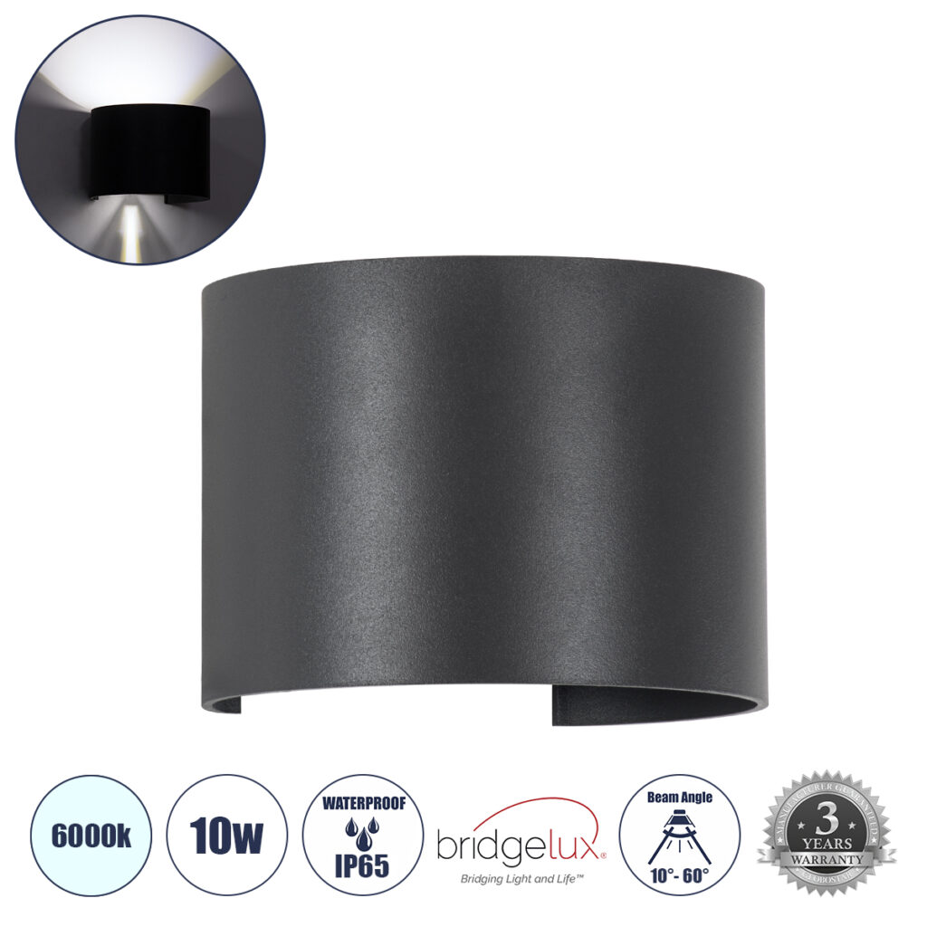 GloboStar® AXIS-R 60642 Φωτιστικό Τοίχου – Απλίκα Αρχιτεκτονικού Φωτισμού Εσωτερικού/Εξωτερικού Χώρου Up & Down LED 10W 1250lm 10 έως 60° AC 220-240V Αδιάβροχο IP65 Μ10 x Π10 x Υ10cm – Ψυχρό Λευκό 6000K – Γκρι Ανθρακί- Bridgelux Chip – 3 Years Warranty