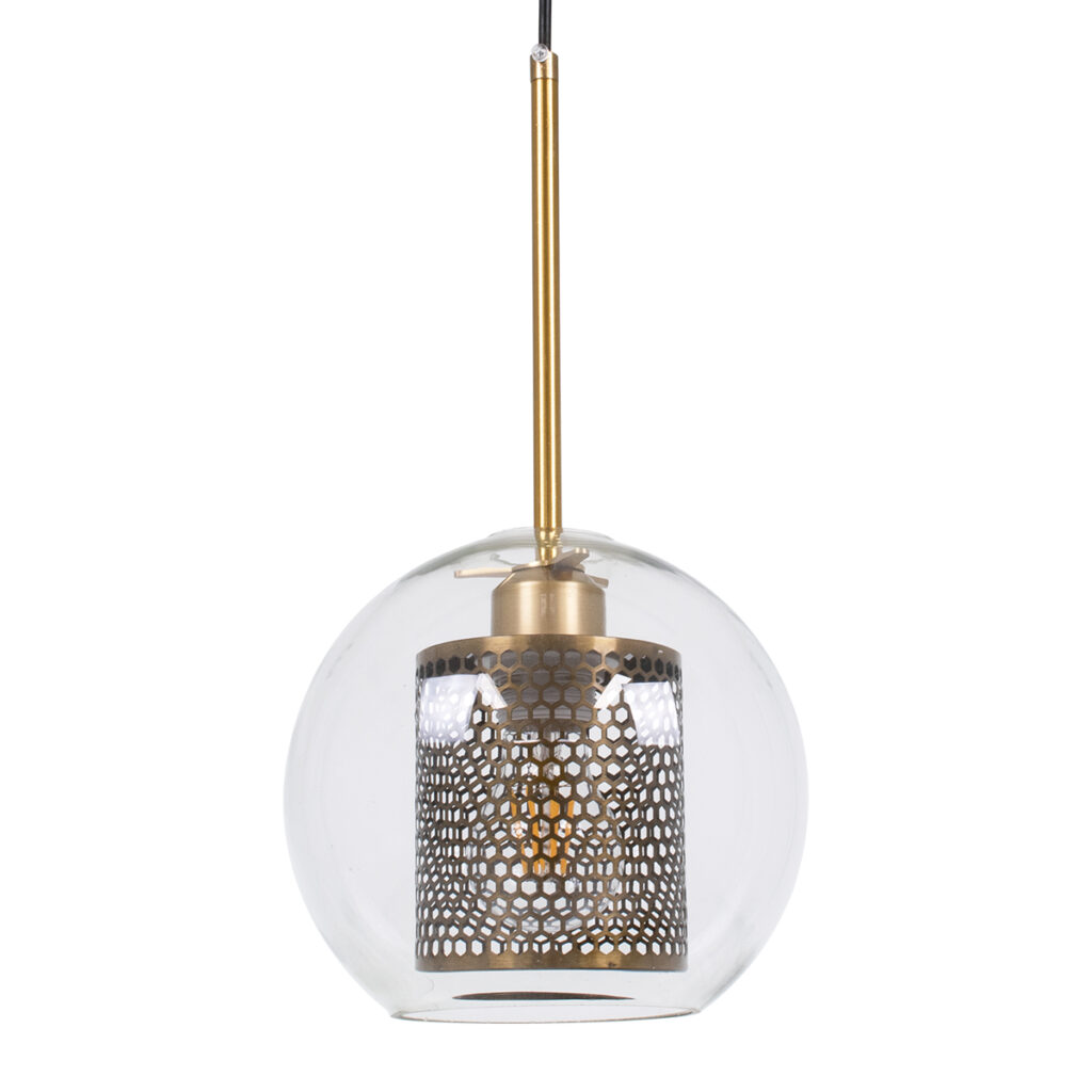 GloboStar® AVERY 00741 Μοντέρνο Κρεμαστό Φωτιστικό Πλέγμα Μονόφωτο 1 x E27 IP20 Διάφανο Γυαλί με Χρυσό Μέταλλο – Μ15 x Π15 x Υ60cm