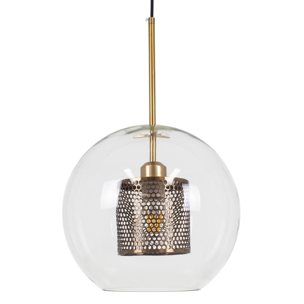 GloboStar® AVERY 00740 Μοντέρνο Κρεμαστό Φωτιστικό Μπάλα Μονόφωτο 1 x E27 IP20 Διάφανο Γυαλί με Χρυσό Μέταλλο – Μ30 x Π30 x Υ48cm