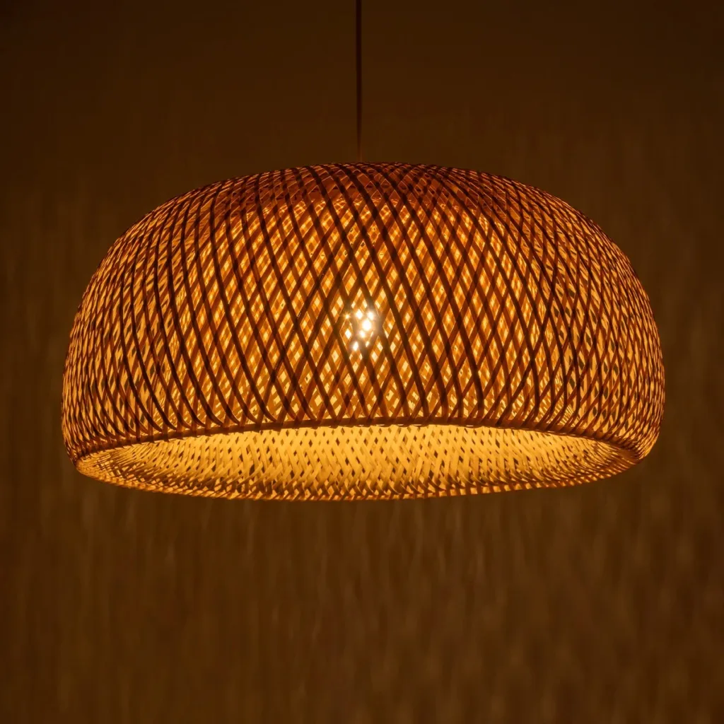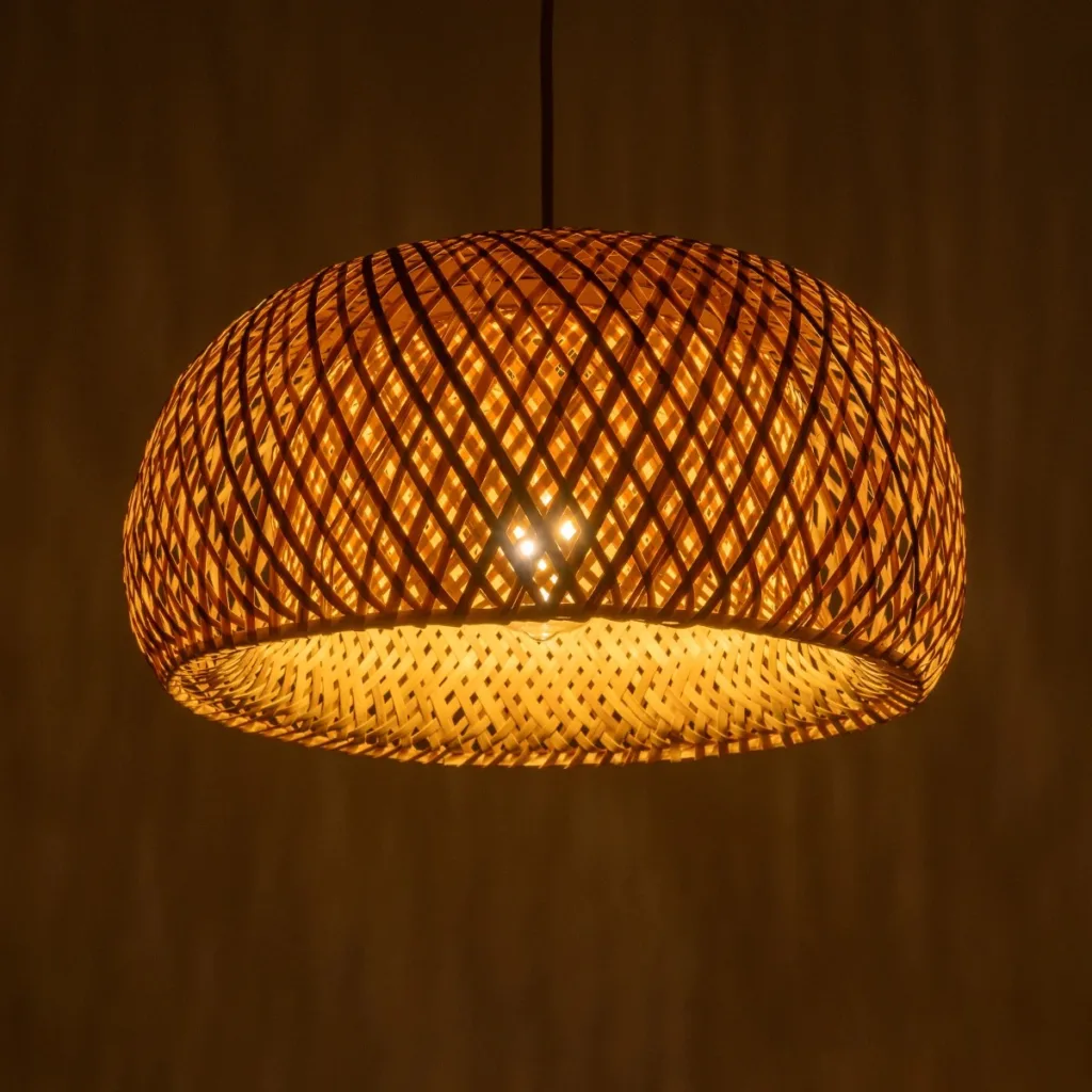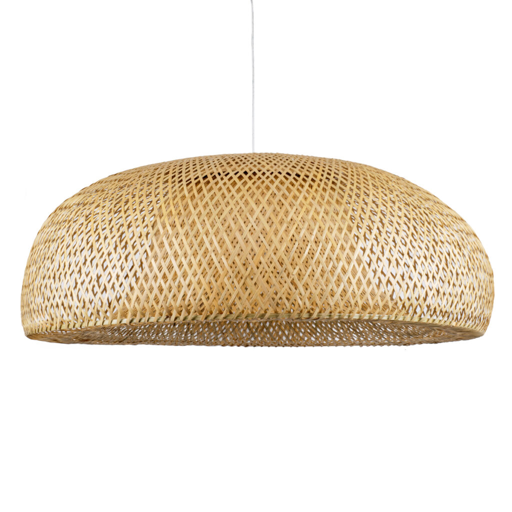 GloboStar® SANTACRUZ 01950 Boho Κρεμαστό Φωτιστικό Καμπάνα Μονόφωτο 1 x E27 IP20 Μπεζ & Καφέ Ξύλο – Μ40 x Π40 x Υ40cm
