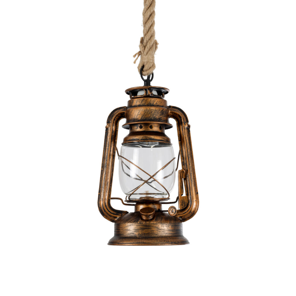 GloboStar® BARBAROSSA 01707 Vintage Κρεμαστό Φωτιστικό Ανάρτηση Μονόφωτο 1 x E27 IP20 Χάλκινο Μέταλλο, Διάφανο Γυαλί με Μπεζ Σχοινί – Μ18 x Π18 x Υ28cm