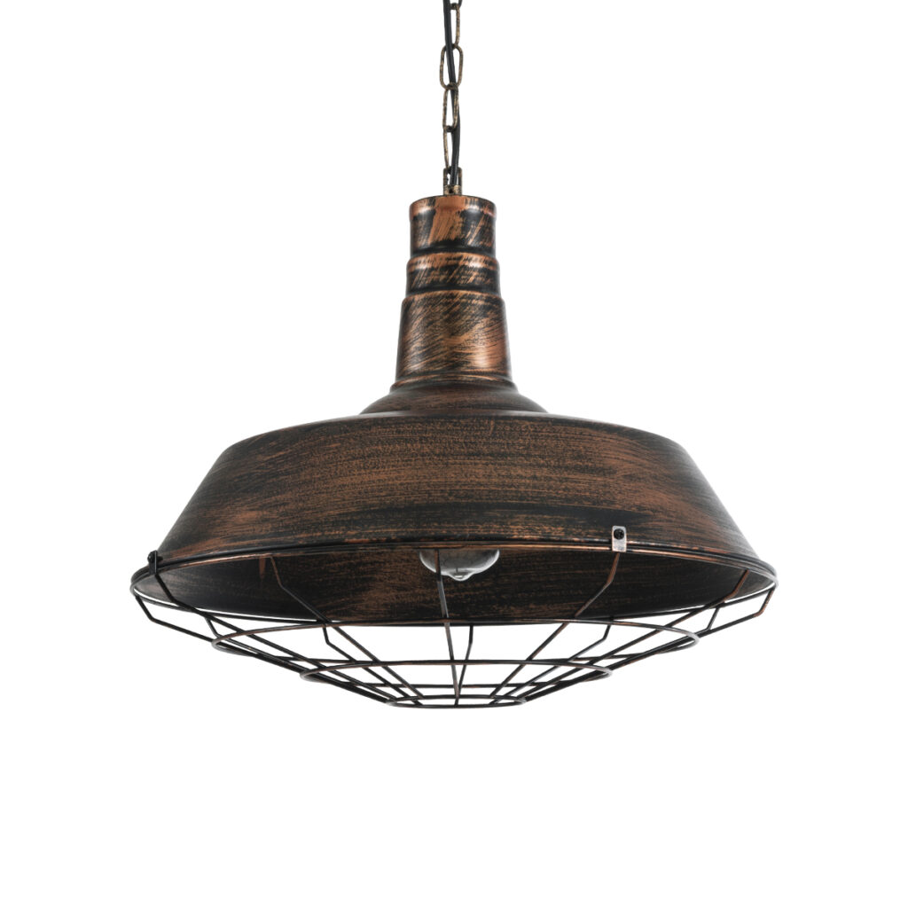 GloboStar® BARN 01045 Vintage Κρεμαστό Φωτιστικό Καμπάνα Μονόφωτο 1 x E27 IP20 Χάλκινο Μέταλλο – Μ46 x Π46 x Υ36cm