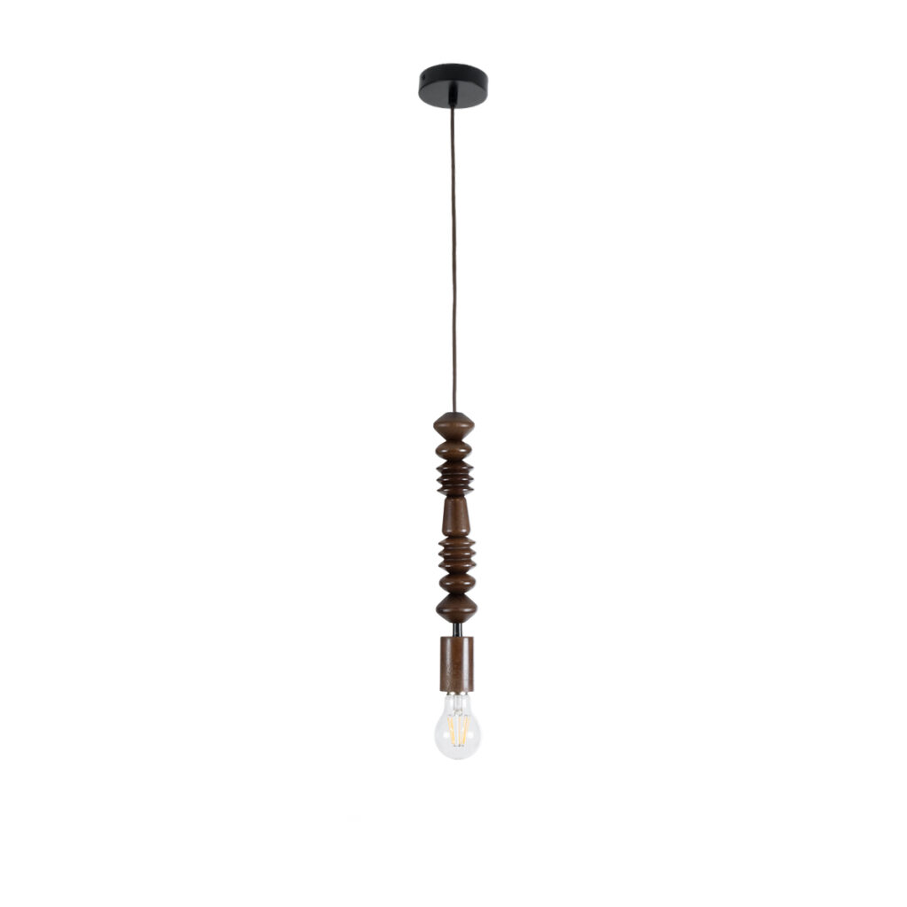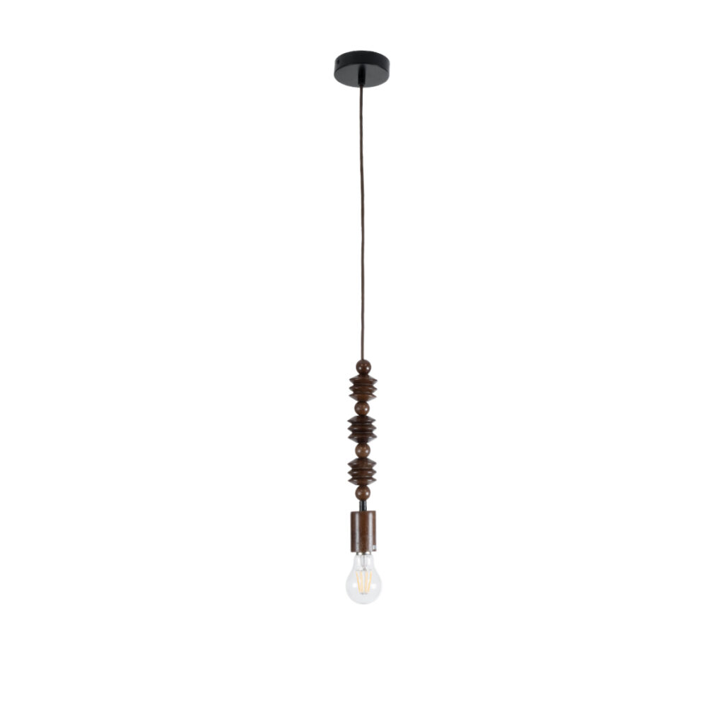 GloboStar® BEADS 00694 Vintage Κρεμαστό Φωτιστικό Ανάρτηση Μονόφωτο 1 x E27 IP20 Καφέ Ξύλο – Μ4 x Π4 x Υ47cm