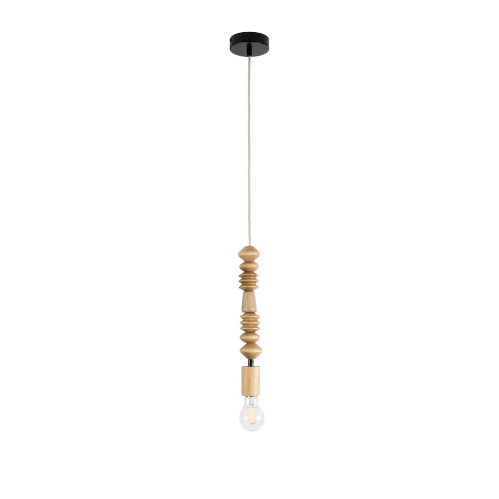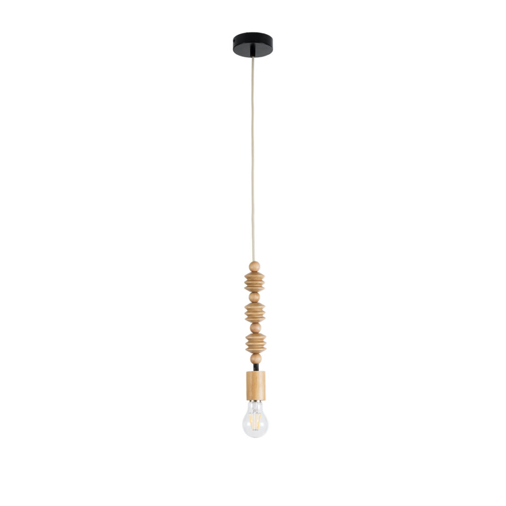 GloboStar® BEADS 00699 Vintage Κρεμαστό Φωτιστικό Ανάρτηση Μονόφωτο 1 x E27 IP20 Μπεζ Ξύλο – Μ4 x Π4 x Υ43cm