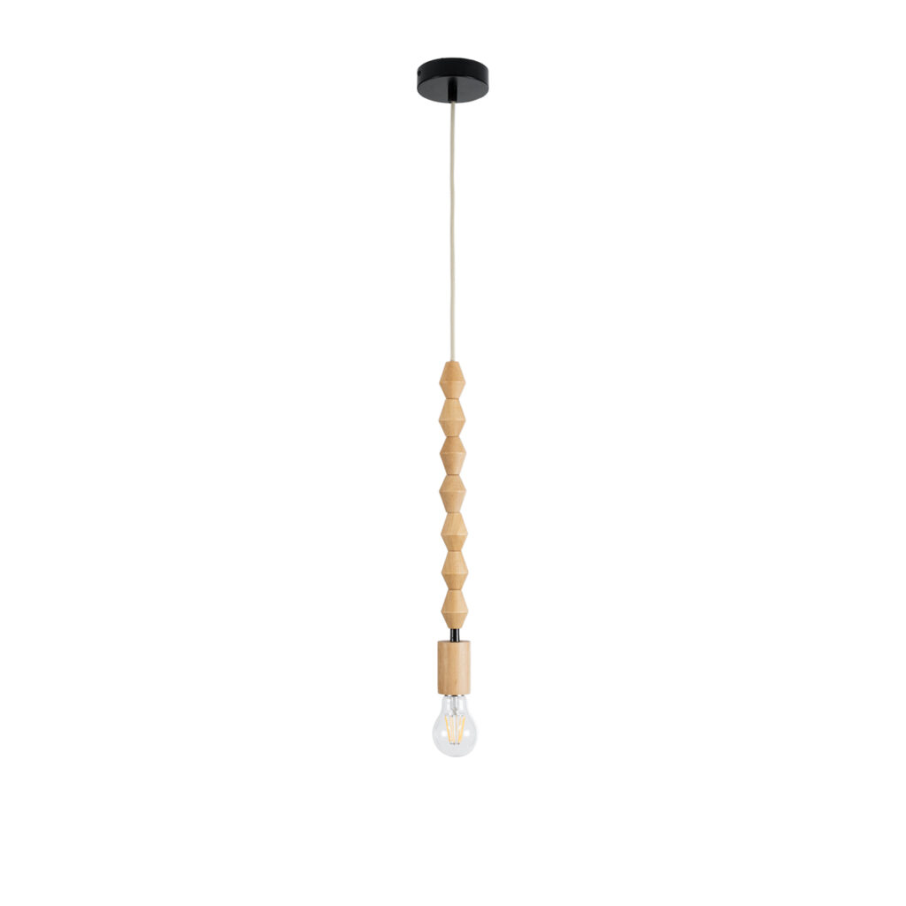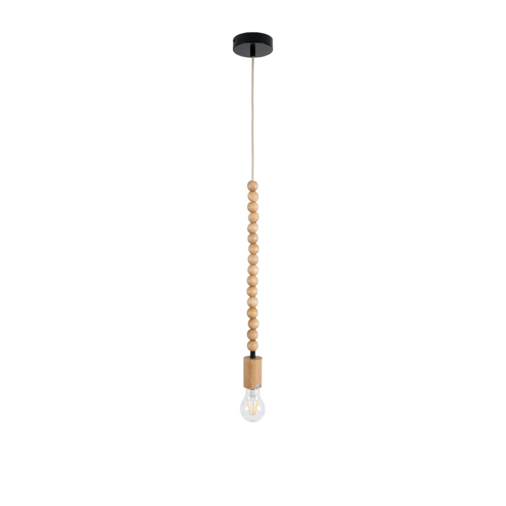 GloboStar® BEADS 00698 Vintage Κρεμαστό Φωτιστικό Ανάρτηση Μονόφωτο 1 x E27 IP20 Μπεζ Ξύλο – Μ4 x Π4 x Υ47cm