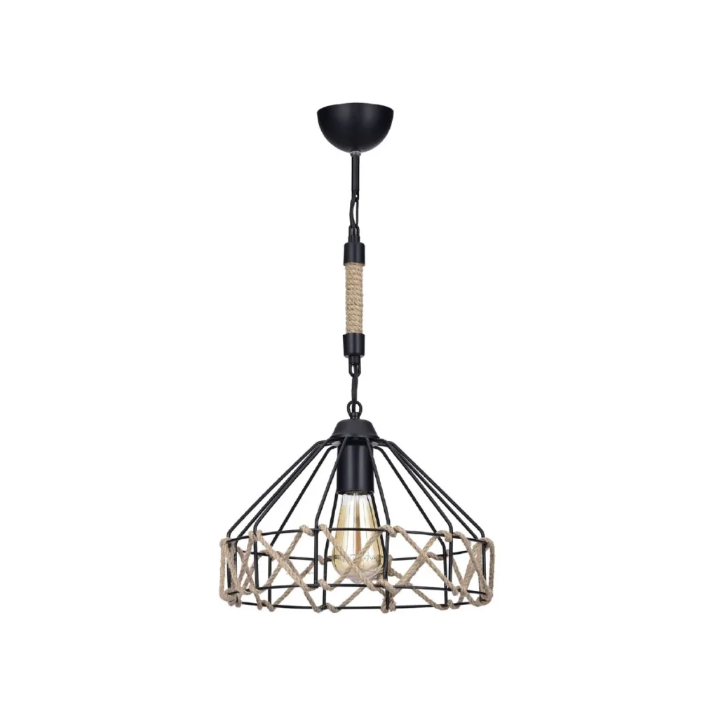 GloboStar® BEAMAX 201-0026 Μοντέρνο Κρεμαστό Φωτιστικό Πλέγμα Μονόφωτο 1 x E27 IP20 Μαύρο Μέταλλο με Μπεζ Σχοινί – Μ30 x Π30 x Υ70cm