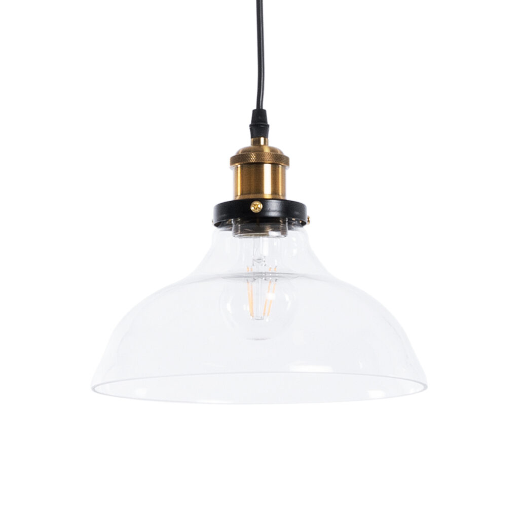 GloboStar® BINGLEY 01075 Vintage Κρεμαστό Φωτιστικό Καμπάνα Μονόφωτο 1 x E27 IP20 Διάφανο Γυαλί με Χρυσό Μέταλλο – Μ24.5 x Π24.5 x Υ15cm