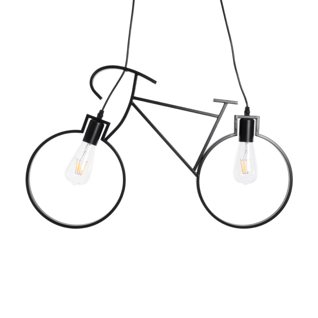 GloboStar® BIKE 01213 Vintage Κρεμαστό Φωτιστικό Φιγούρα Δίφωτο 2 x E27 IP20 Μαύρο Μέταλλο – Μ67 x Π3.5 x Υ41cm