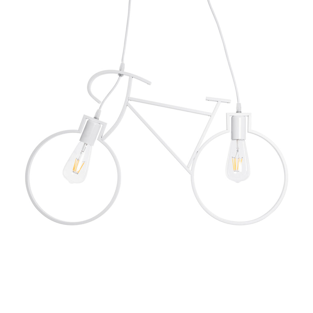 GloboStar® BIKE 01300 Vintage Κρεμαστό Φωτιστικό Φιγούρα Δίφωτο 2 x E27 IP20 Λευκό Μέταλλο – Μ67 x Π3.5 x Υ41cm