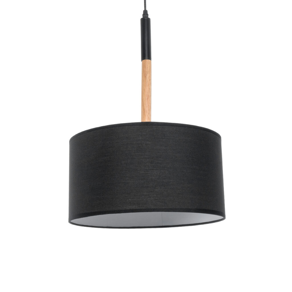GloboStar® BRONX 01517 Μοντέρνο Κρεμαστό Φωτιστικό Καπέλο Μονόφωτο 1 x E27 IP20 Μαύρο Ύφασμα με Μπεζ Ξύλο – Μ35 x Π35 x Υ50cm