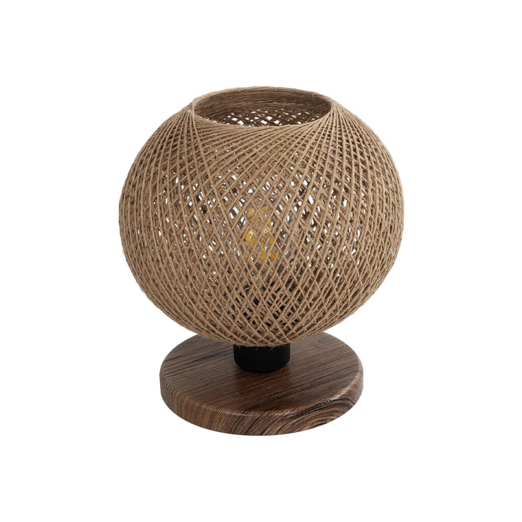 GloboStar® BOWL 204-0087 Μοντέρνο Eπιτραπέζιο Φωτιστικό Μονόφωτο 1 x E27 IP20 Καφέ Ξύλο με Μπεζ Σνοινί – Μ19 x Π19 x Υ22cm