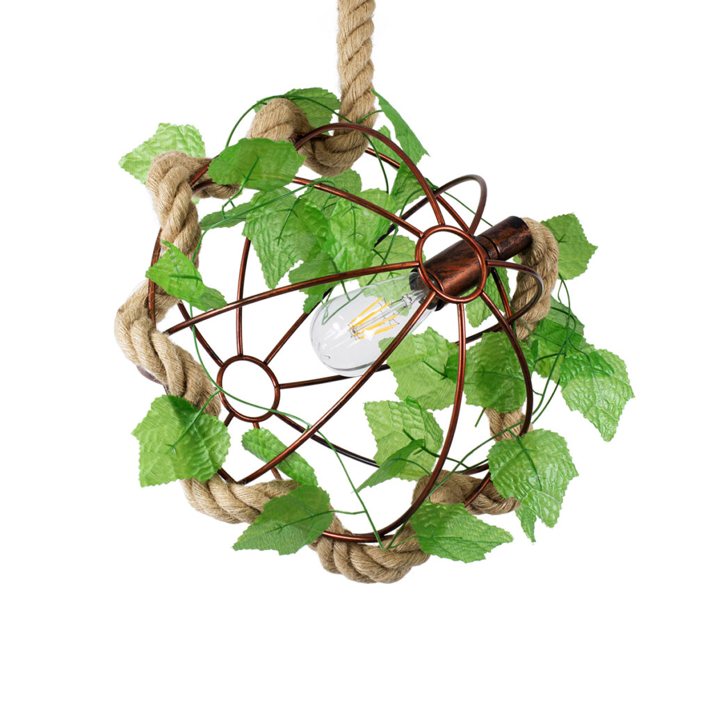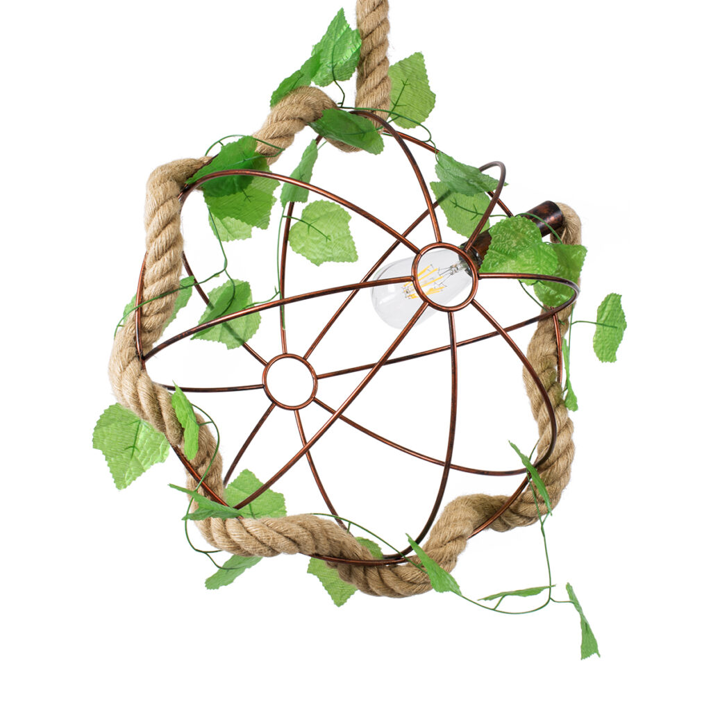 GloboStar® BRADLEY 01660 Vintage Κρεμαστό Φωτιστικό Πλέγμα Μονόφωτο 1 x E27 IP20 Μπεζ Σχοινί, Πράσινο Πλαστικό με Χάλκινο Μέταλλο – Μ33 x Π33 x Y33cm