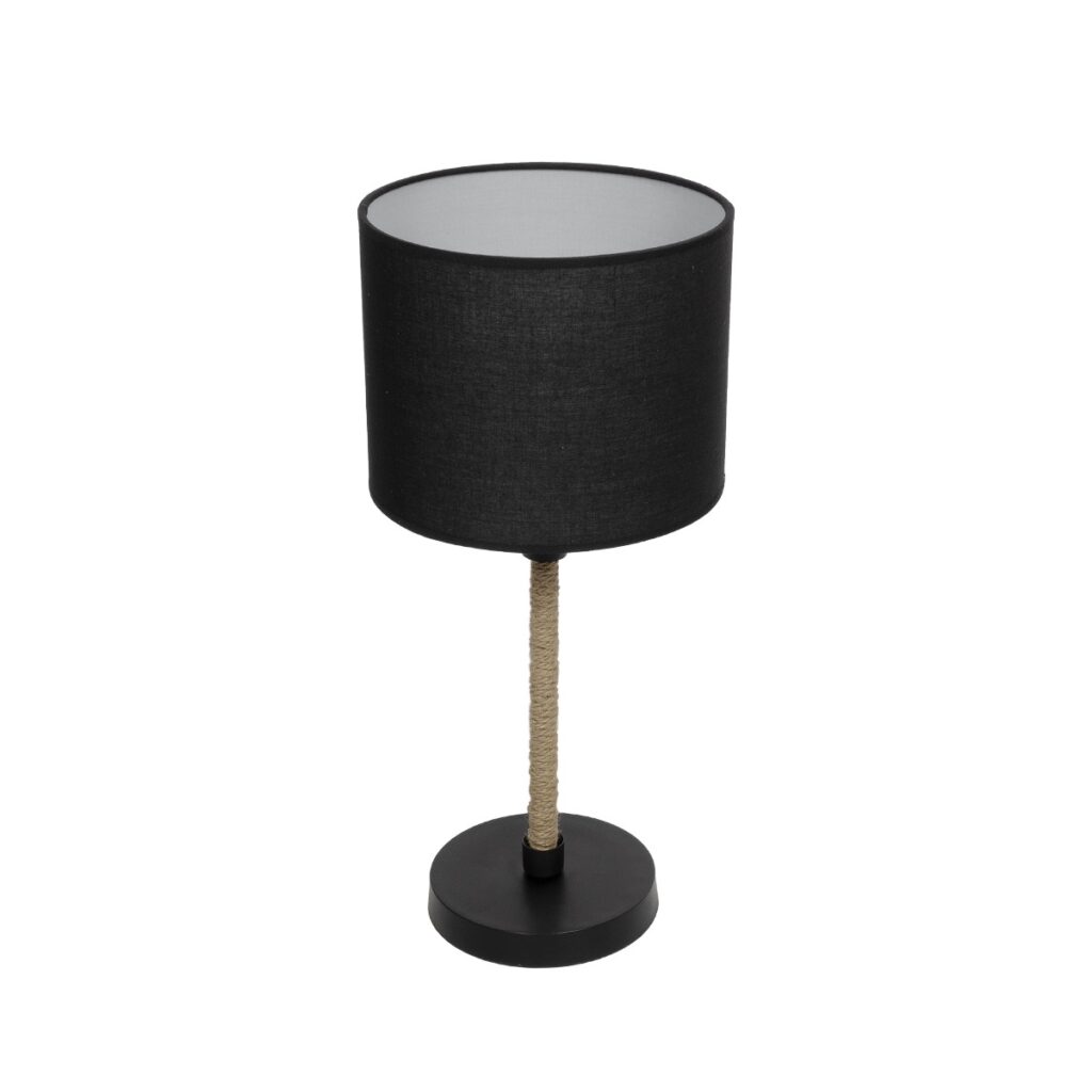 GloboStar® BRONX 201-0062 Μοντέρνο Επιτραπέζιο Φωτιστικό Μονόφωτο 1 x E27 IP20 Μαύρο Ύφασμα, Μπεζ Σχοινί με Μαύρο Μέταλλο – Μ24 x Π24 x Υ37cm