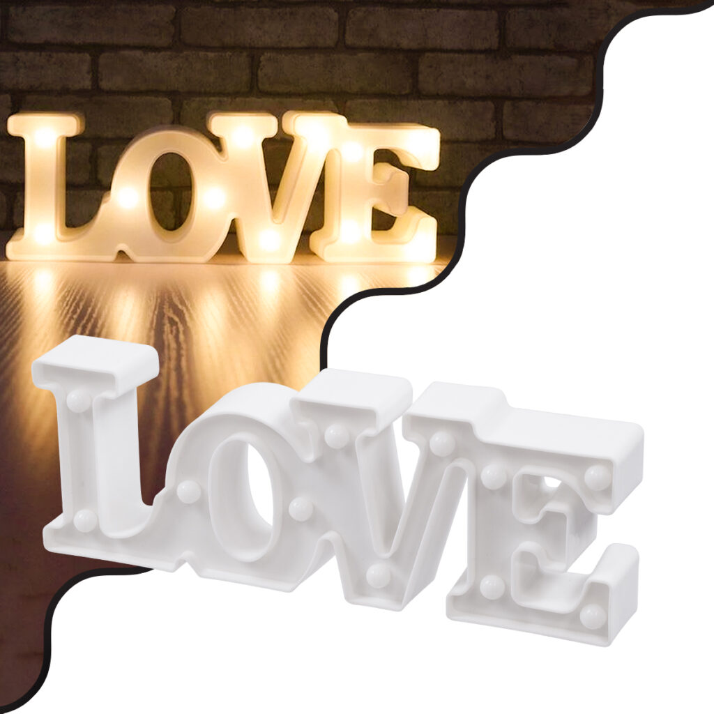 GloboStar® 76549 Λευκό Μοντέρνο Επιτραπέζιο Διακοσμητικό Φωτιστικό LED Σήμανσης LOVE 2W με Διακόπτη On/Off Μπαταρίας 2xAAA (Δεν Περιλαμβάνονται) Θερμό Λευκό 2700K