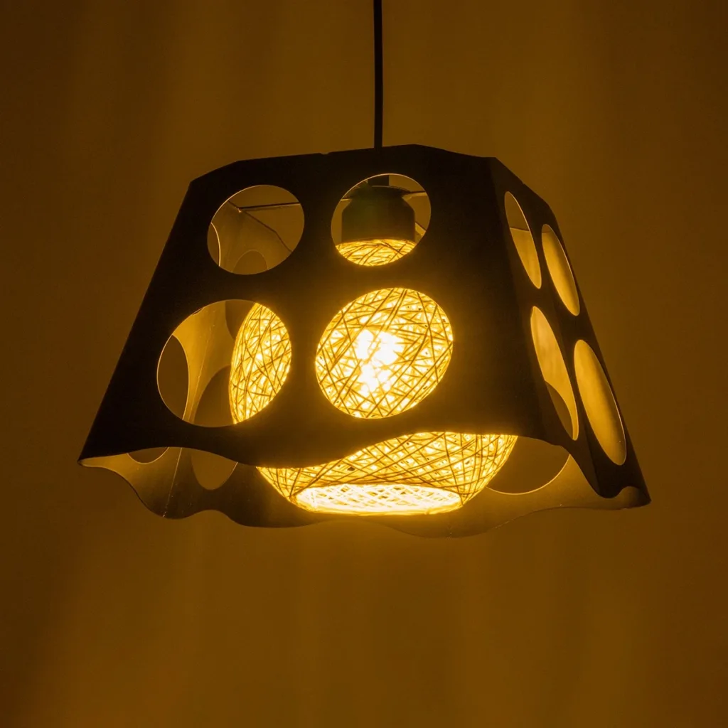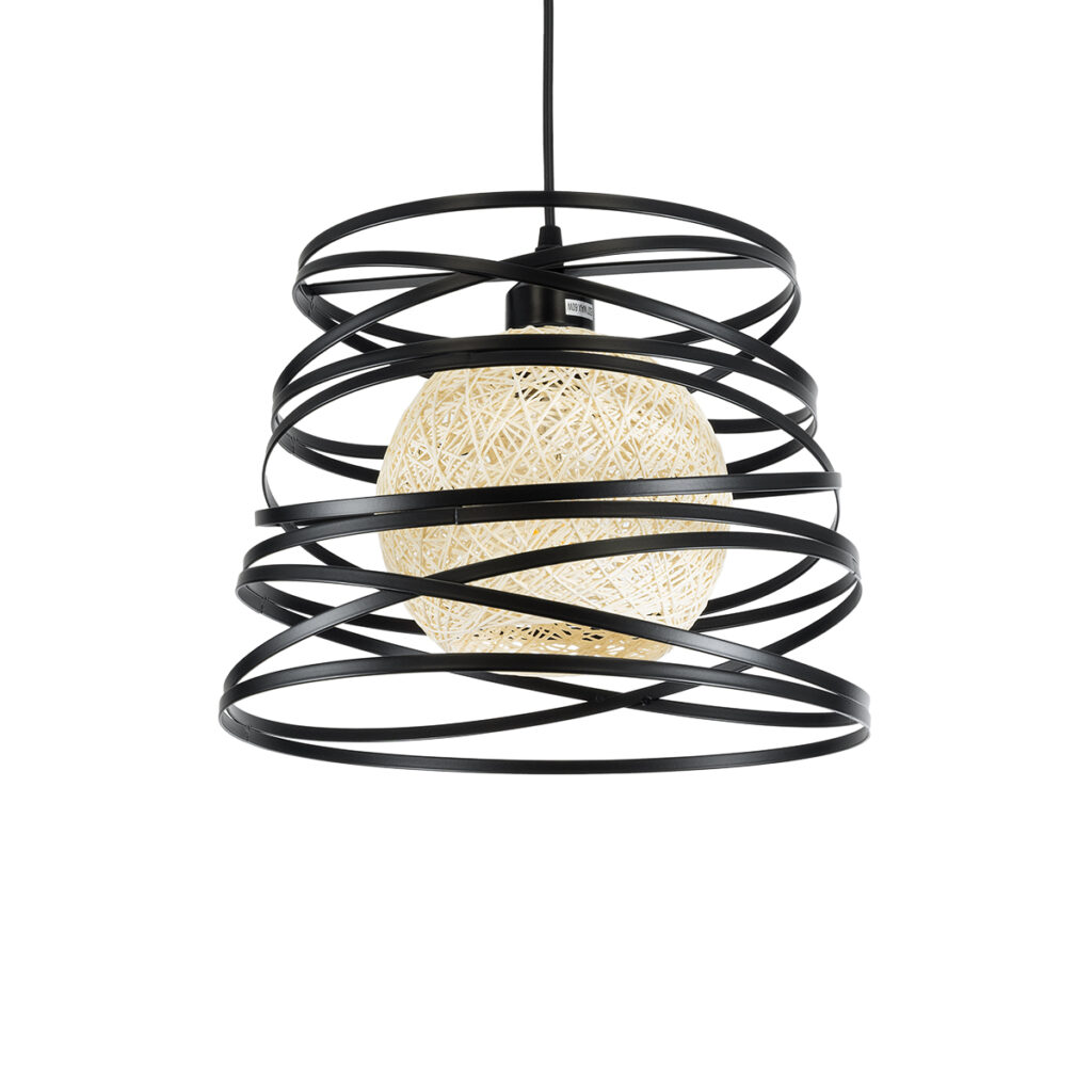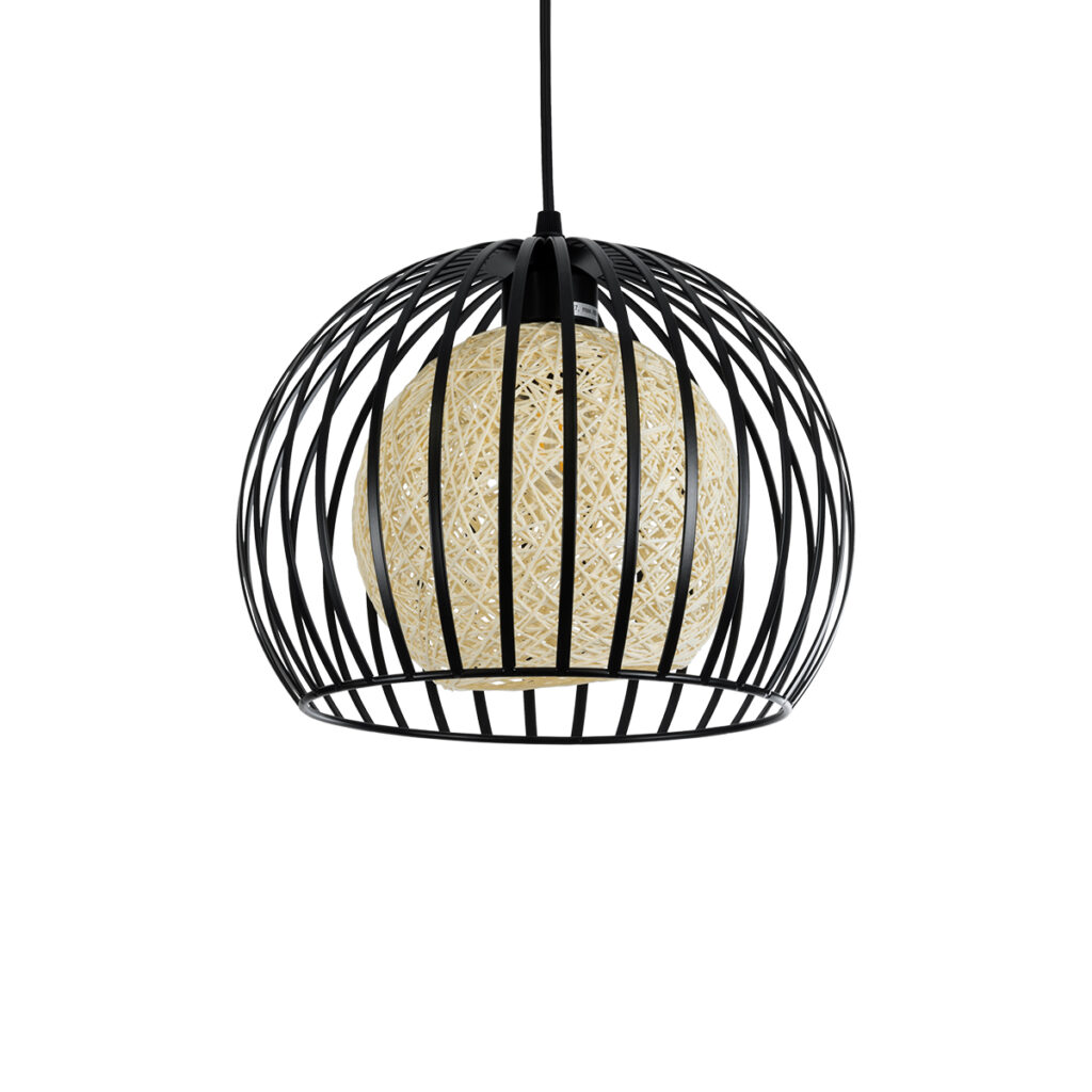 GloboStar® CARTER 00961 Μοντέρνο Κρεμαστό Φωτιστικό Πλέγμα Μονόφωτο 1 x E27 IP20 Μαύρο Μέταλλο με Μπεζ Σχοινί – Μ32 x Π32 x Υ25cm