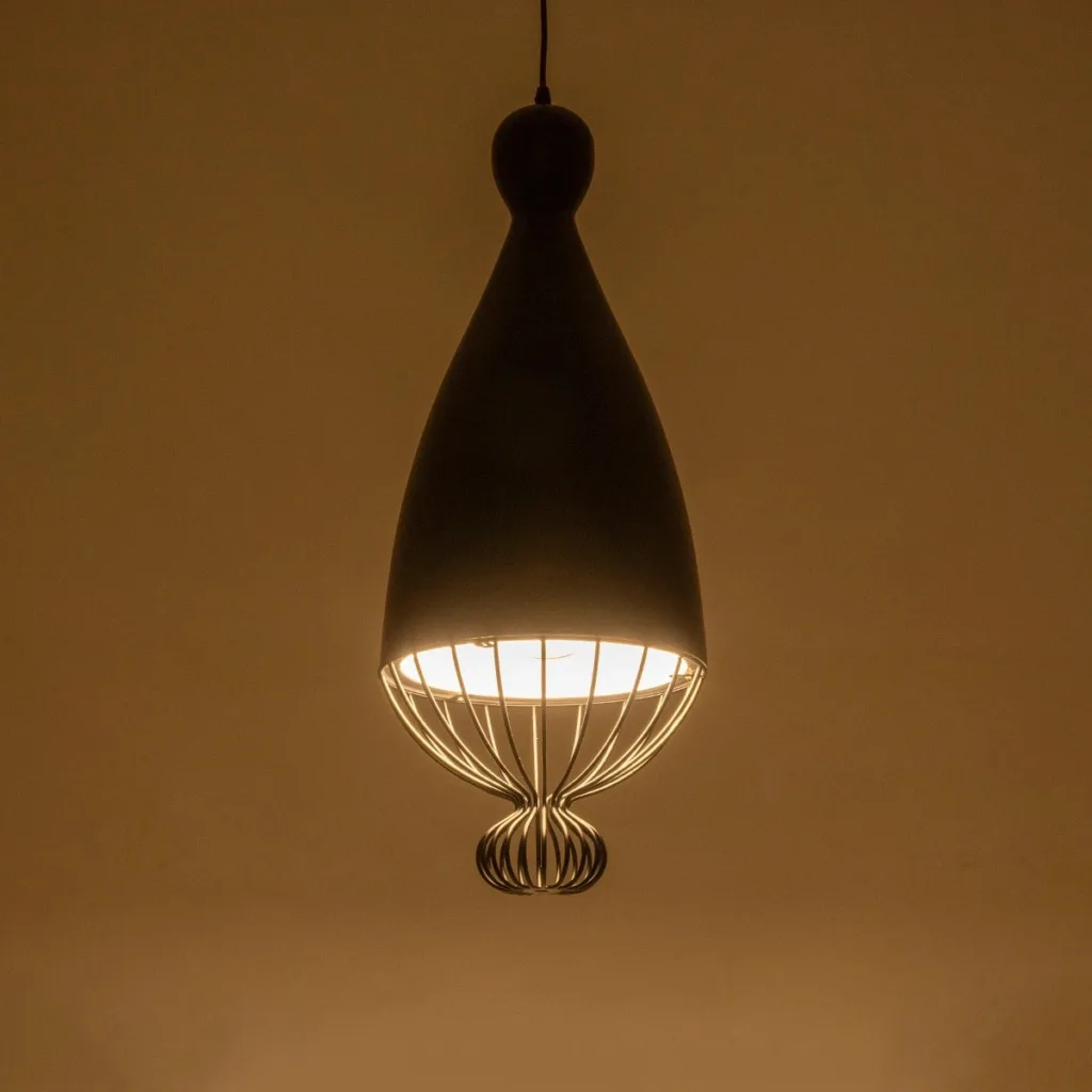 GloboStar® CARTER 00960 Μοντέρνο Κρεμαστό Φωτιστικό Πλέγμα Μονόφωτο 1 x E27 IP20 Μαύρο Μέταλλο με Μελί Γυαλί – Μ28 x Π28 x Υ23cm