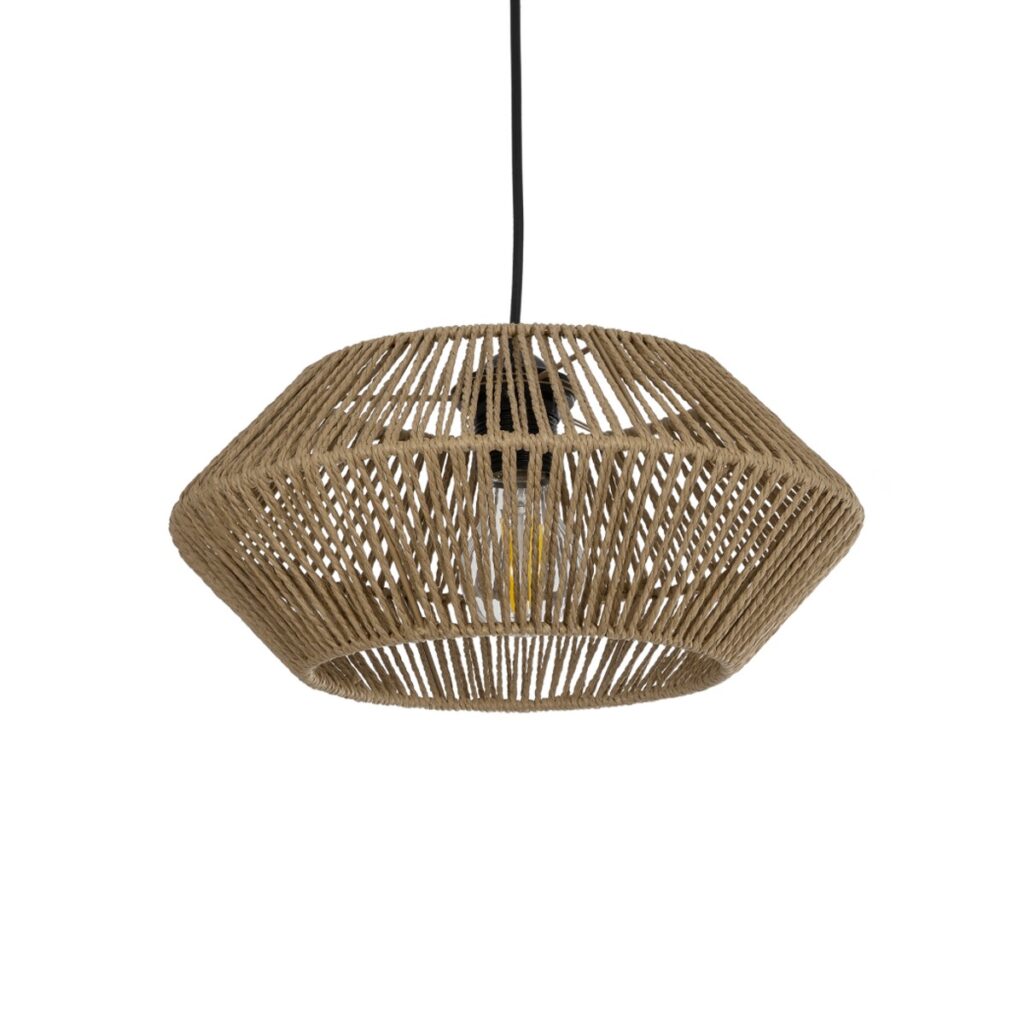 GloboStar® CASTRO 204-0164 Boho Κρεμαστό Φωτιστικό Kαπέλο Μονόφωτο 1 x E27 IP20 Μπεζ Σχοινί – Μ31 x Π31 x Υ26cm