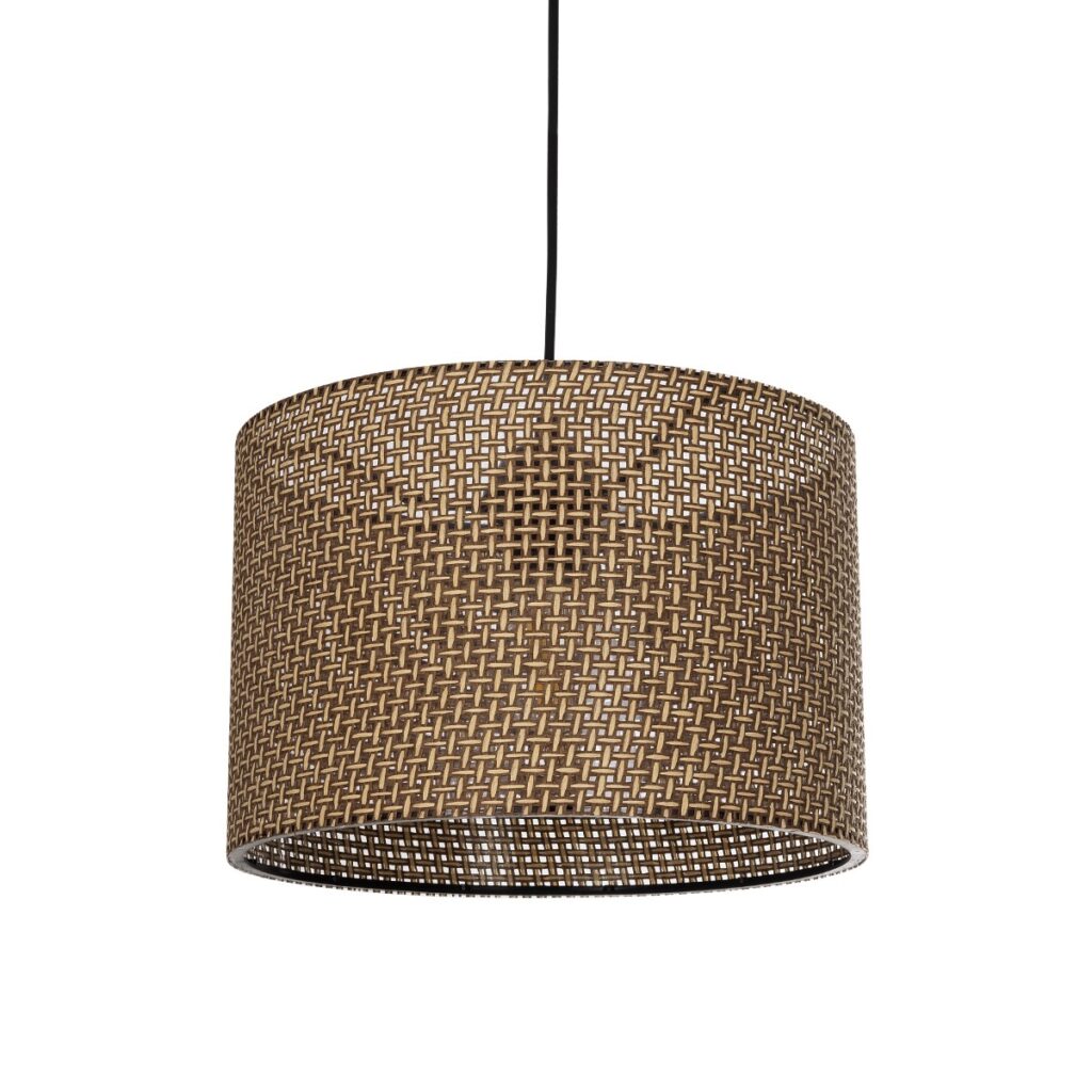 GloboStar® CLAIRIE 203-0132 Μοντέρνο Κρεμαστό Φωτιστικό Καπέλο Μονόφωτο 1 x E27 IP20 Καφέ Ύφασμα – Μ22 x Π22 x Υ93cm