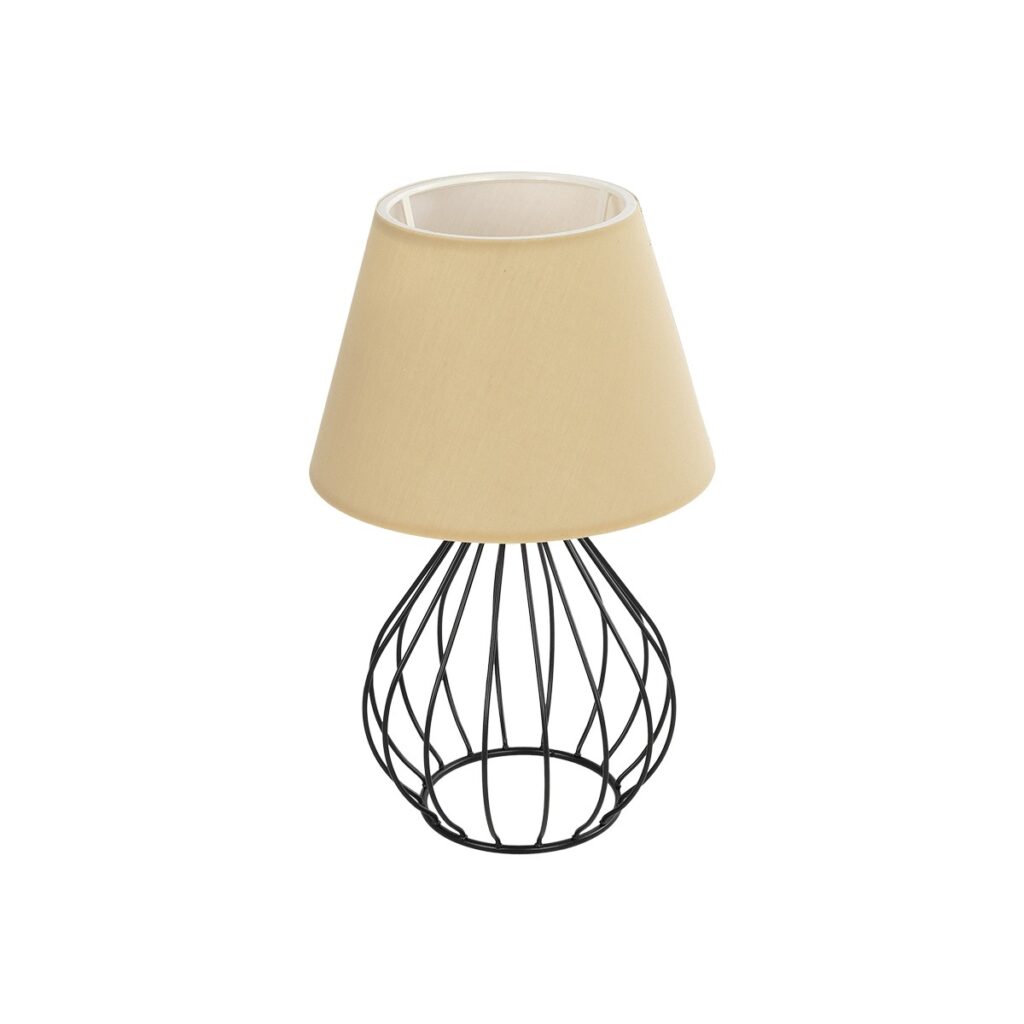 GloboStar® CLASS 204-0079 Μοντέρνο Eπιτραπέζιο Φωτιστικό Μονόφωτο 1 x E27 IP20 Μαύρο Μέταλλο με Μπεζ Ύφασμα – Μ22 x Π22 x Υ36cm