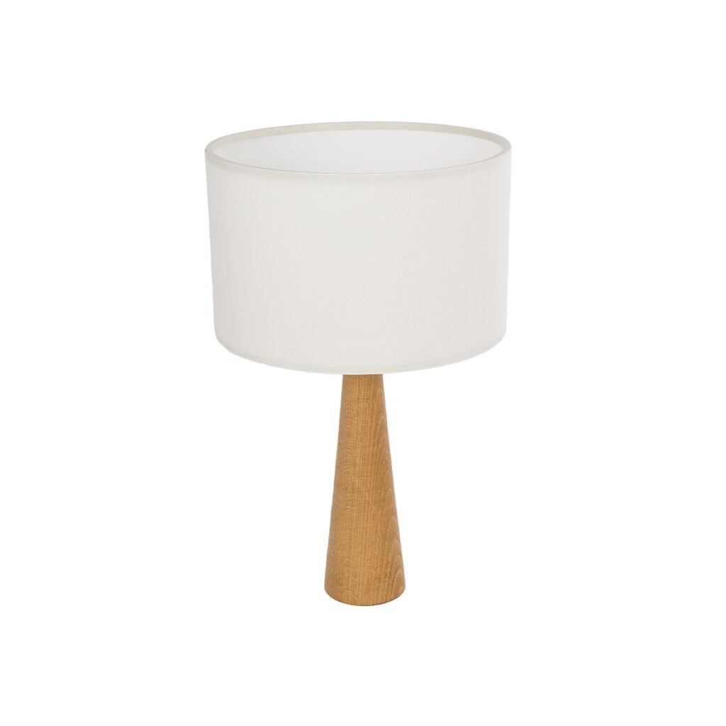 GloboStar® COBRA 204-0066 Μοντέρνο Eπιτραπέζιο Φωτιστικό Μονόφωτο 1 x E27 IP20 Καφέ Ξύλο με Μπεζ Ύφασμα – Μ24 x Π24 x Υ38cm