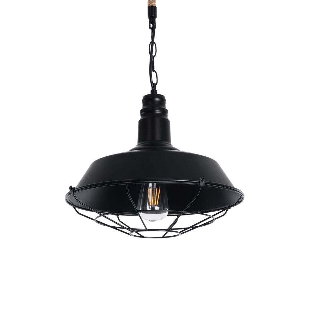 GloboStar® CRANE 01109 Vintage Κρεμαστό Φωτιστικό Καμπάνα Μονόφωτο 1 x E27 IP20 Μαύρο Μέταλλο με Μπεζ Σχοινί – Μ36 x Π36 x Υ30cm