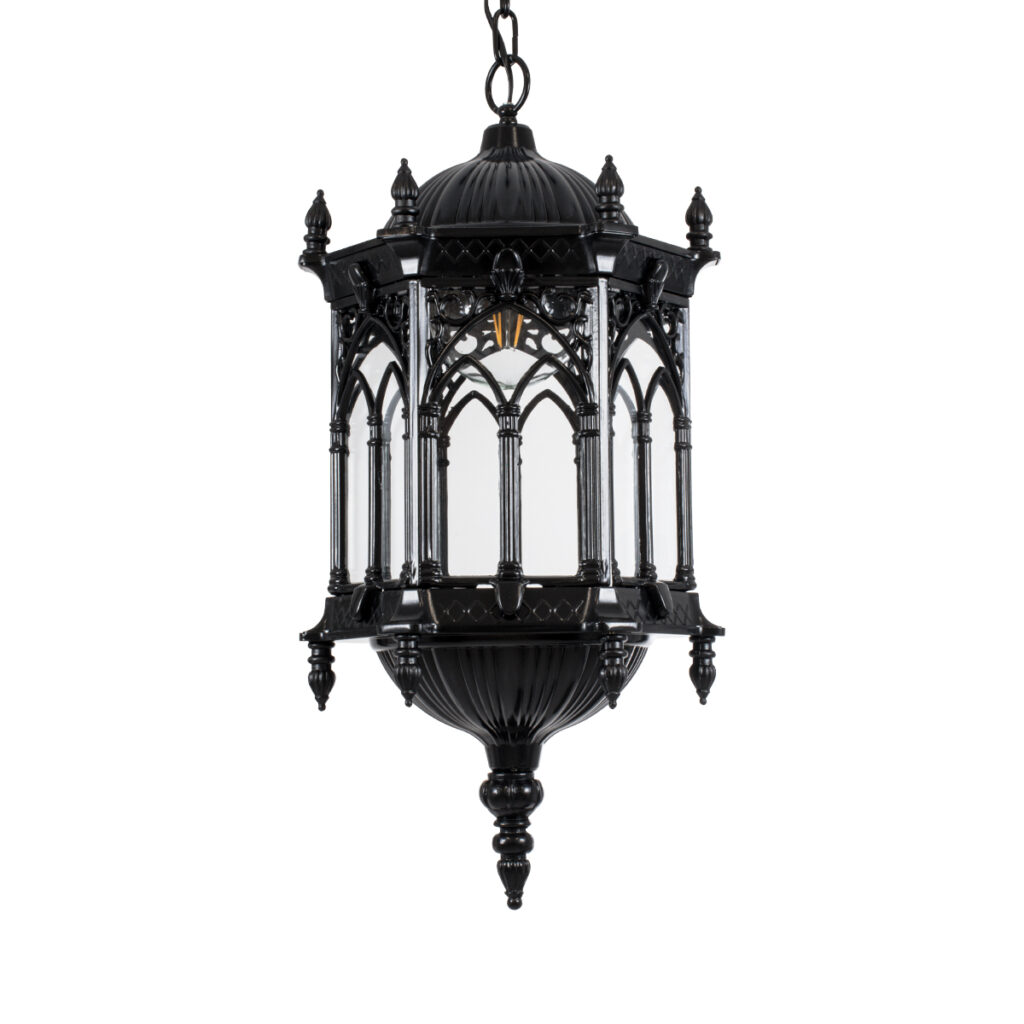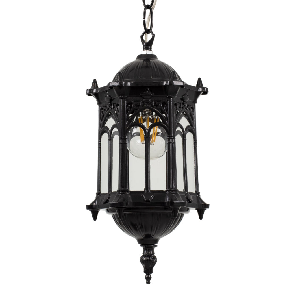 GloboStar® DARCY 00672 Vintage Κρεμαστό Φωτιστικό Ανάρτηση Μονόφωτο 1 x E27 IP20 Μαύρο Μέταλλο με Διάφανο Γυαλί – Μ35 x Π35 x Υ61cm