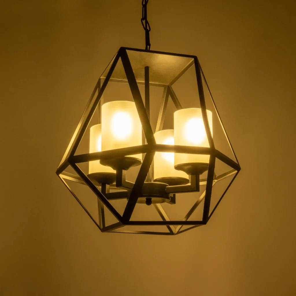 GLOBOSTAR® DASTAR 999-0091 Vintage Κρεμαστό Φωτιστικό Οροφής με Ντουί 4 x E27 AC 220-240V IP20 – Μαύρο & Λευκό – Μ42 x Π42 x Υ43cm